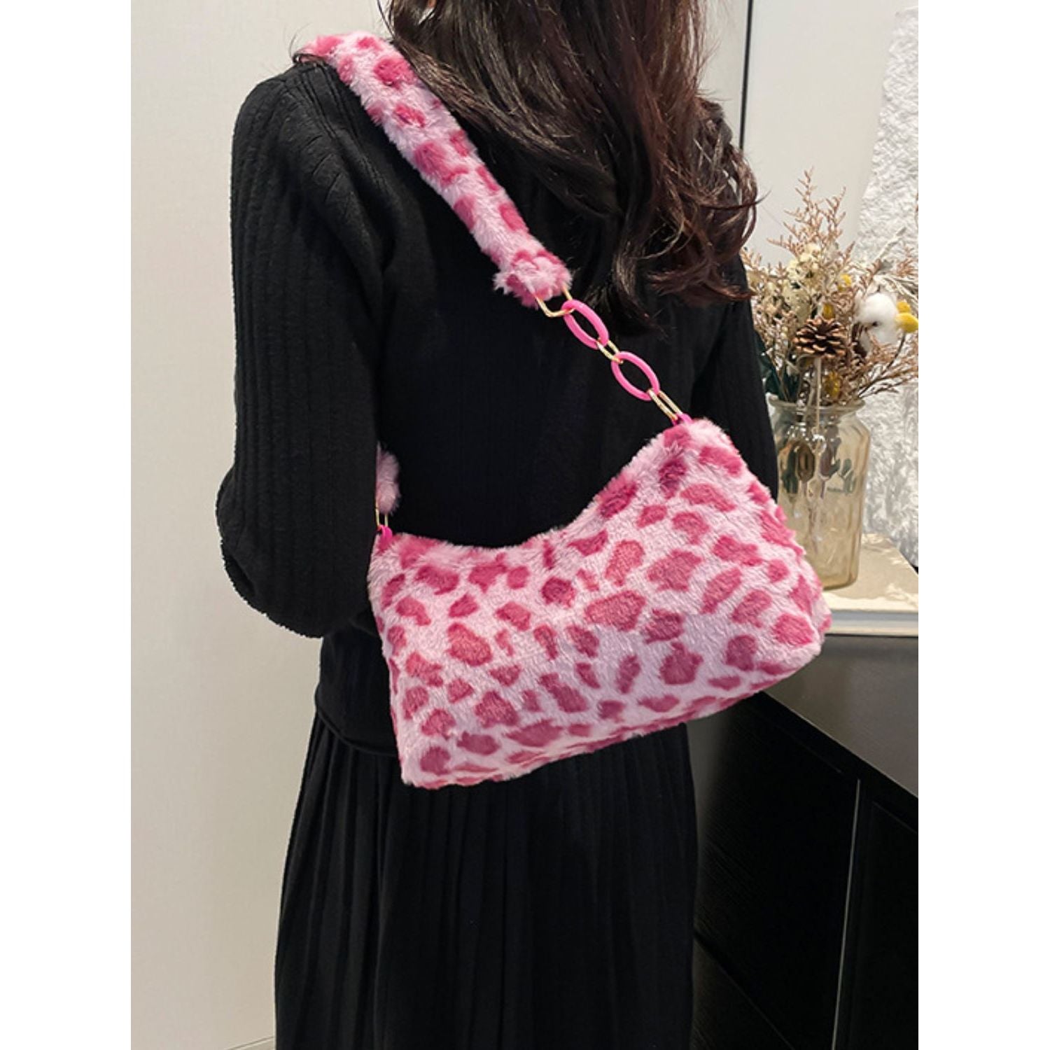 Leopard Fluff Shoulder Bag