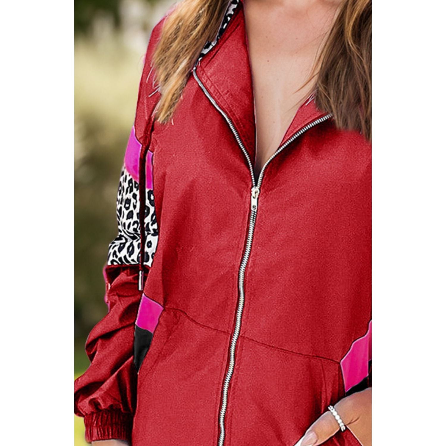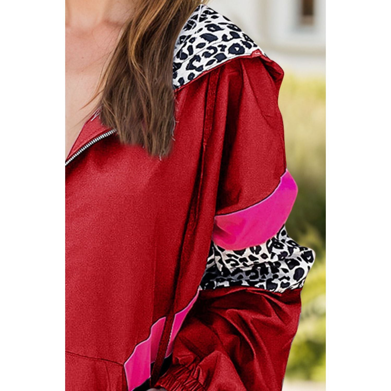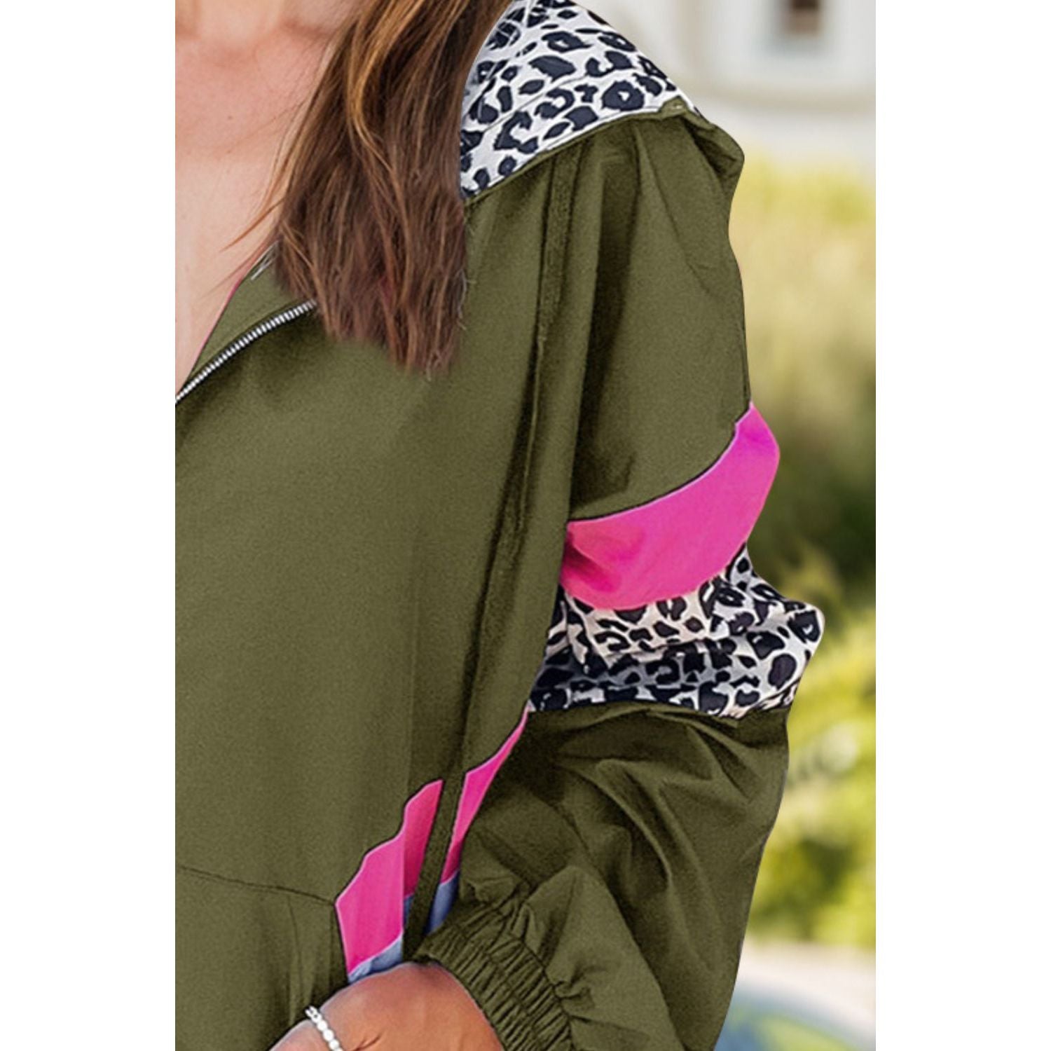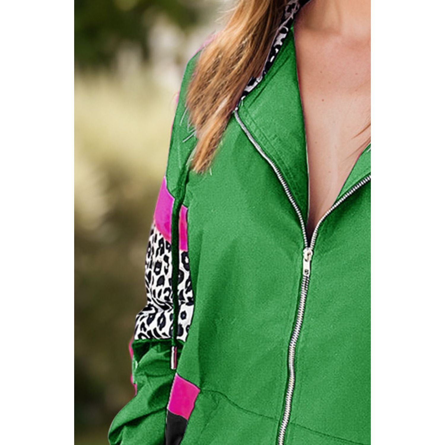 Leopard Zip Up Long Sleeve Hooded Jacket