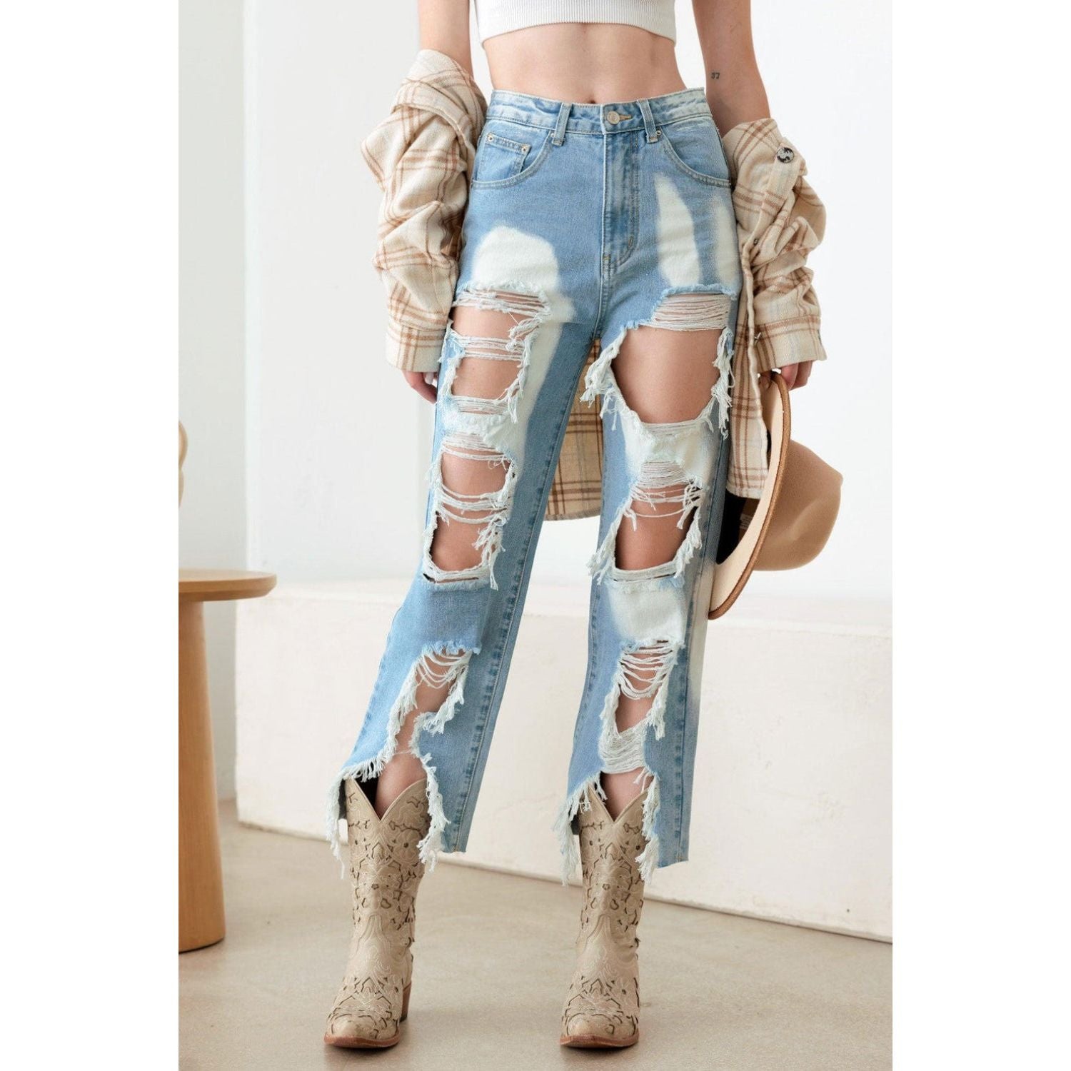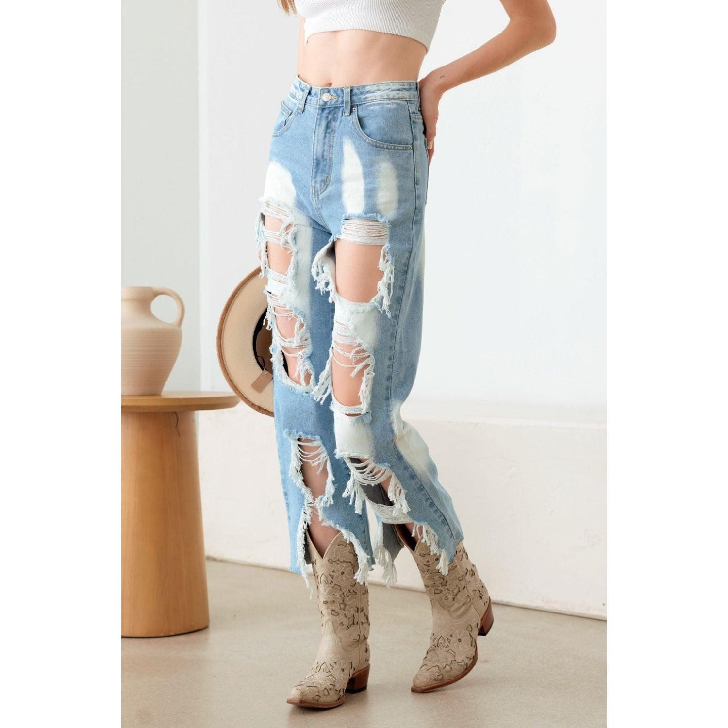 These Frayed Cut Distressed Jeans are the epitome of cool and stylish. With their distressed hems and detailed distressing, they exude a laid-back yet edgy vibe. The mid-rise waist and four pockets offer both style and functionality, while the metal gold buttons and zipper closure add a touch of sophistication. The western boho influences enhance the overall chicness of these jeans, making them the perfect choice for achieving a cool and trendy look every day.