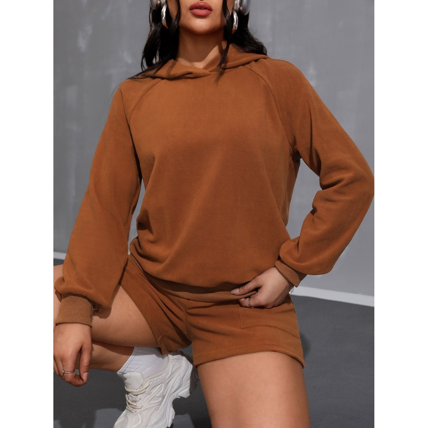 Long Sleeve Hoodie and Pocketed Shorts Set