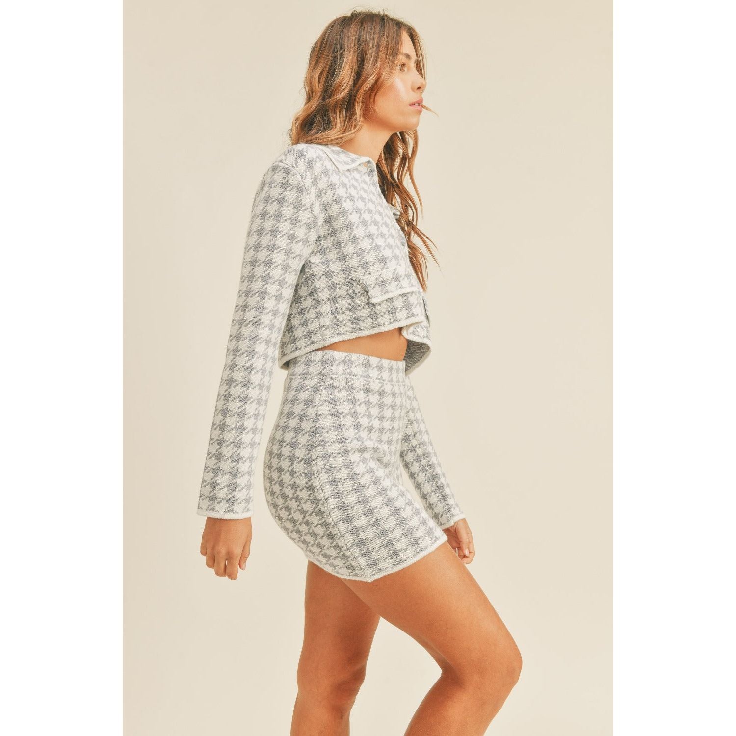 MABLE Houndstooth Cropped Knit Cardigan and Mini Skirt Set