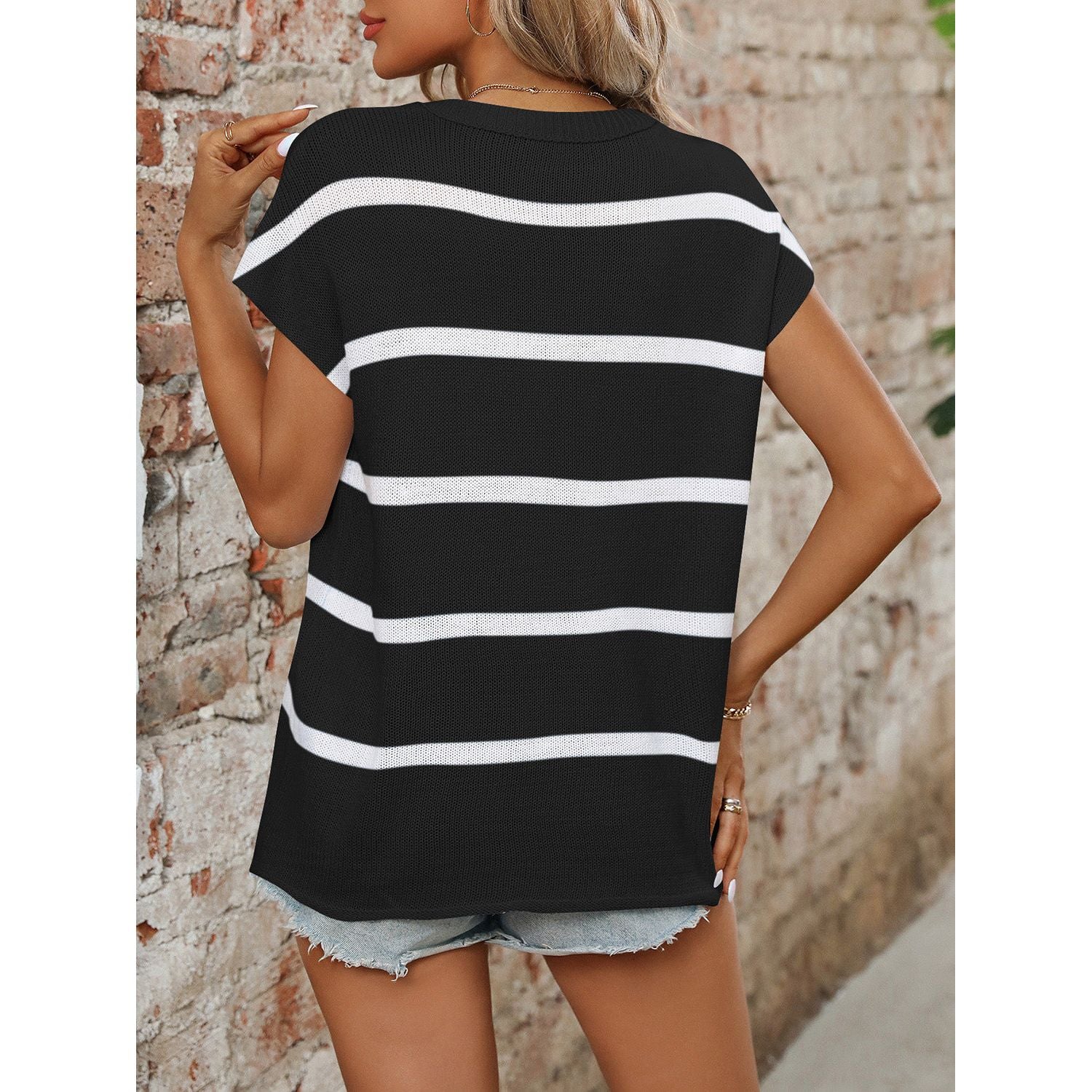 Mandy Striped Round Neck Short Sleeve Knit Top