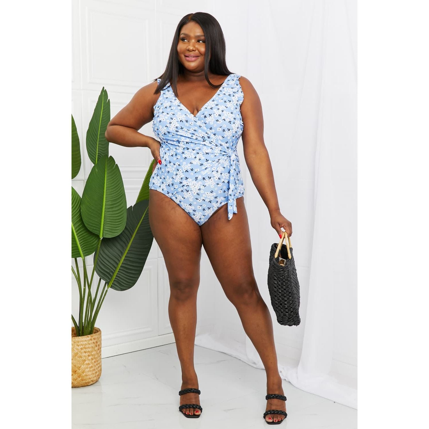Marina West Swim Full Size Float On Ruffle Faux Wrap One-Piece in Blossom Blue