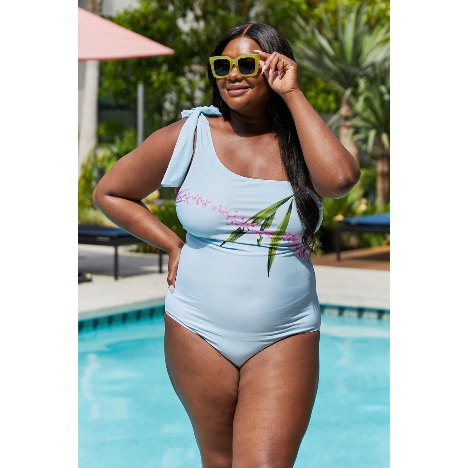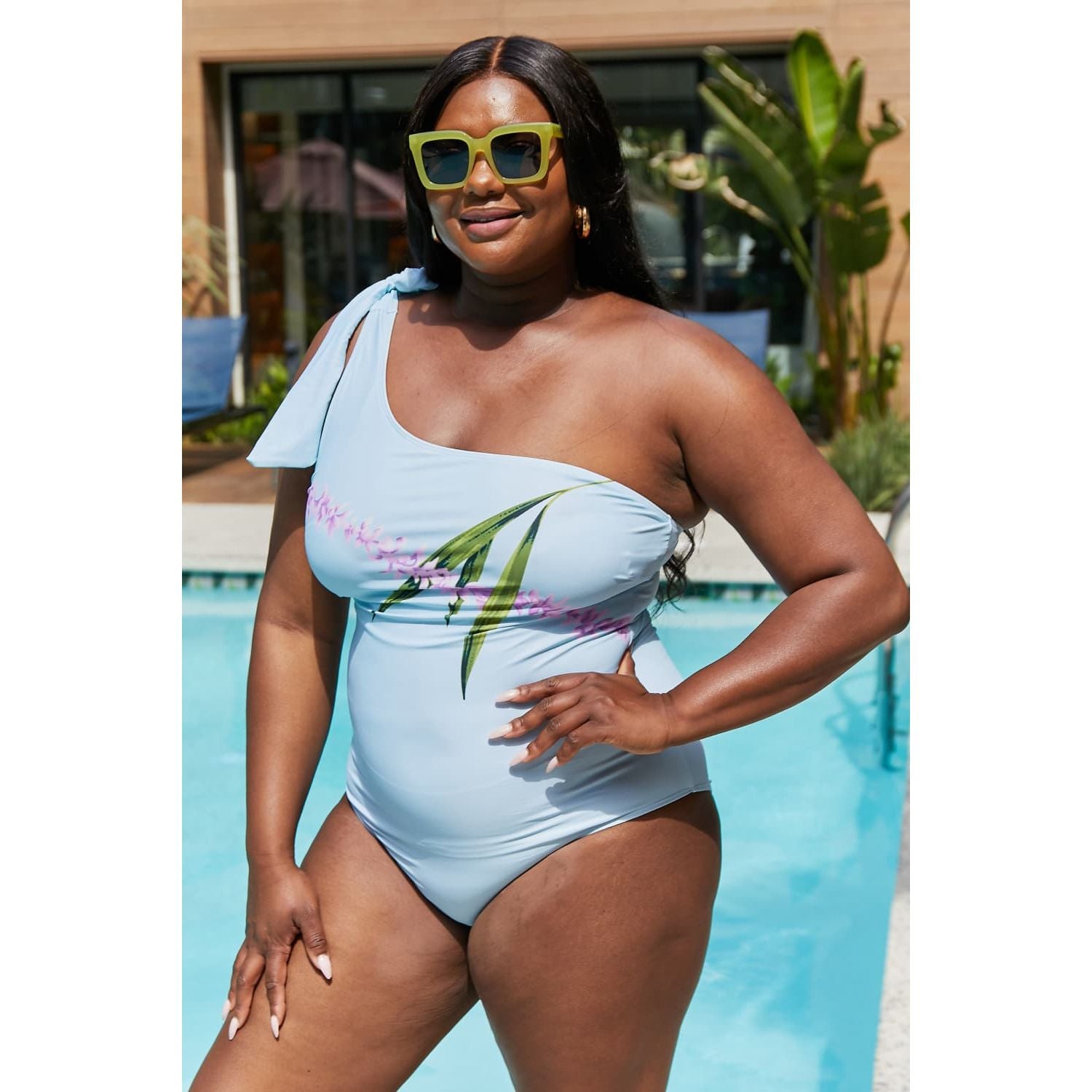 Marina West Swim Vacay Mode One Shoulder Swimsuit in Pastel Blue