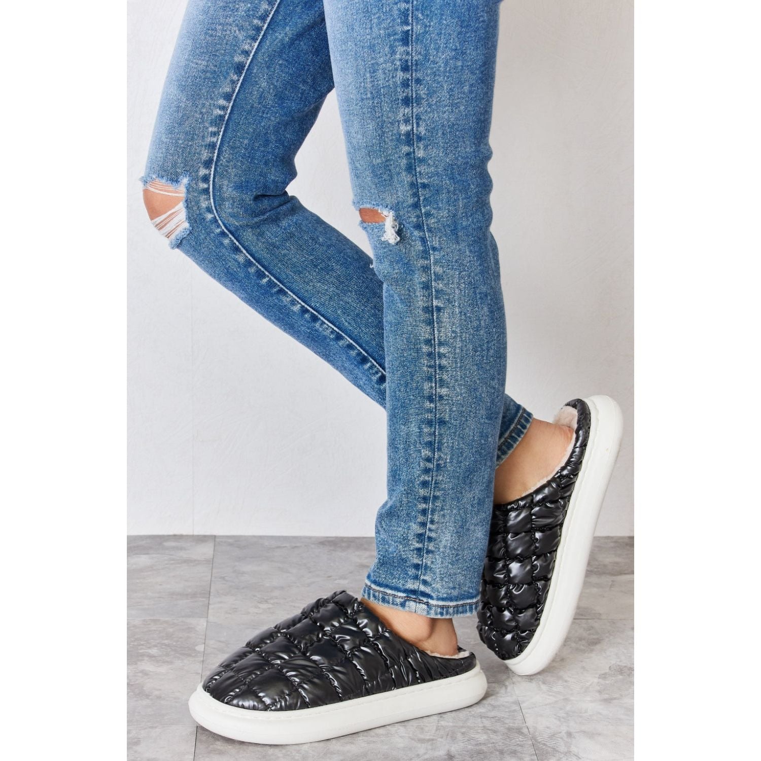 These slippers feature a luxurious puffer material that envelops your feet in warmth and softness. The plush interior offers a cloud-like feel, ensuring every step is cushioned and comforting. With a sturdy yet flexible sole, these slippers are perfect for lounging indoors while providing the support you need.