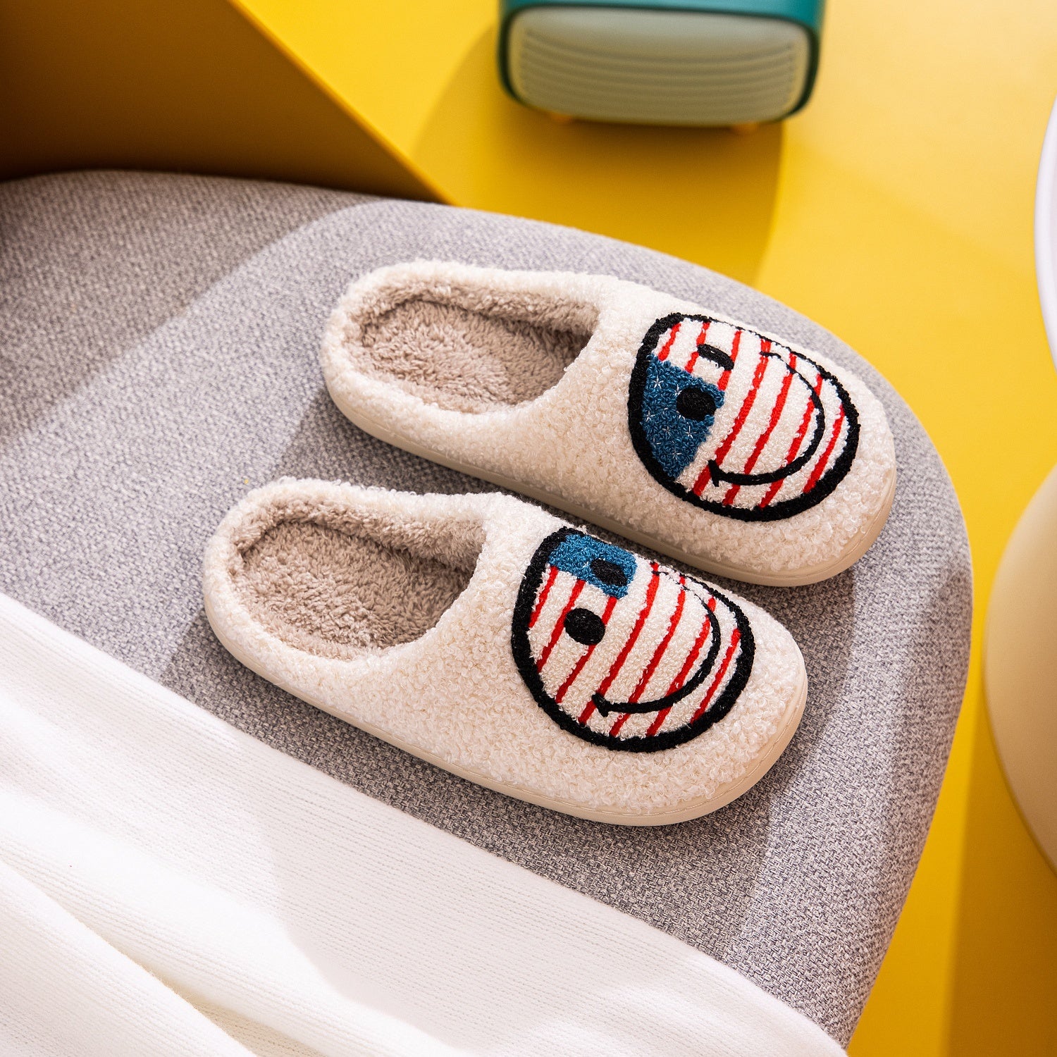 Introducing the adorable Smiley Face Cozy Slippers! These cozy and plush slippers are designed to bring a smile to your face every time you put them on. With their soft and warm material, you'll feel like you're walking on clouds. The cute smiley face design adds a touch of fun and playfulness to your loungewear. Perfect for relaxing at home, these slippers will keep your feet snug and cozy throughout the day. Treat yourself or someone special to the Smiley Face Cozy Slippers and bring joy and comfort to your feet!