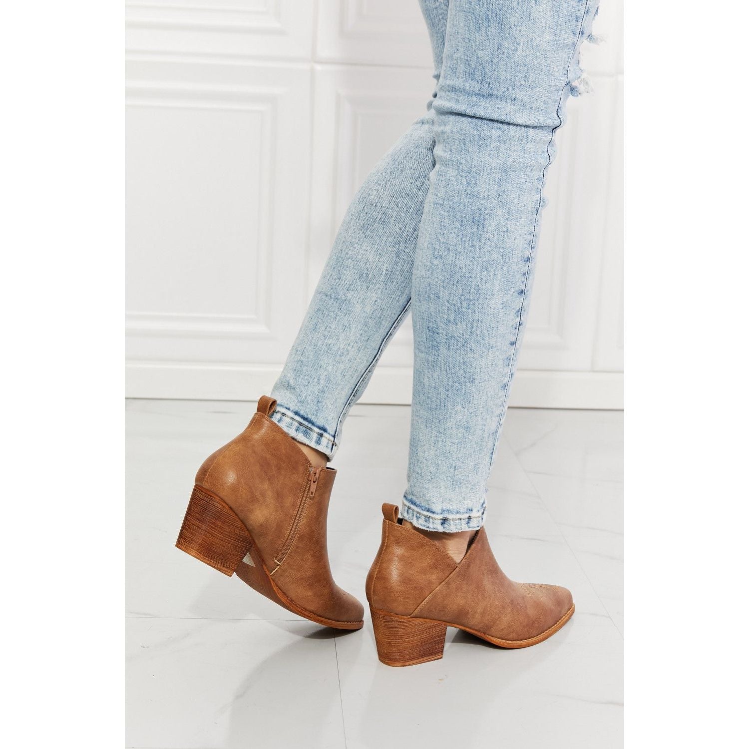 MMShoes Trust Yourself Embroidered Crossover Cowboy Bootie in Caramel