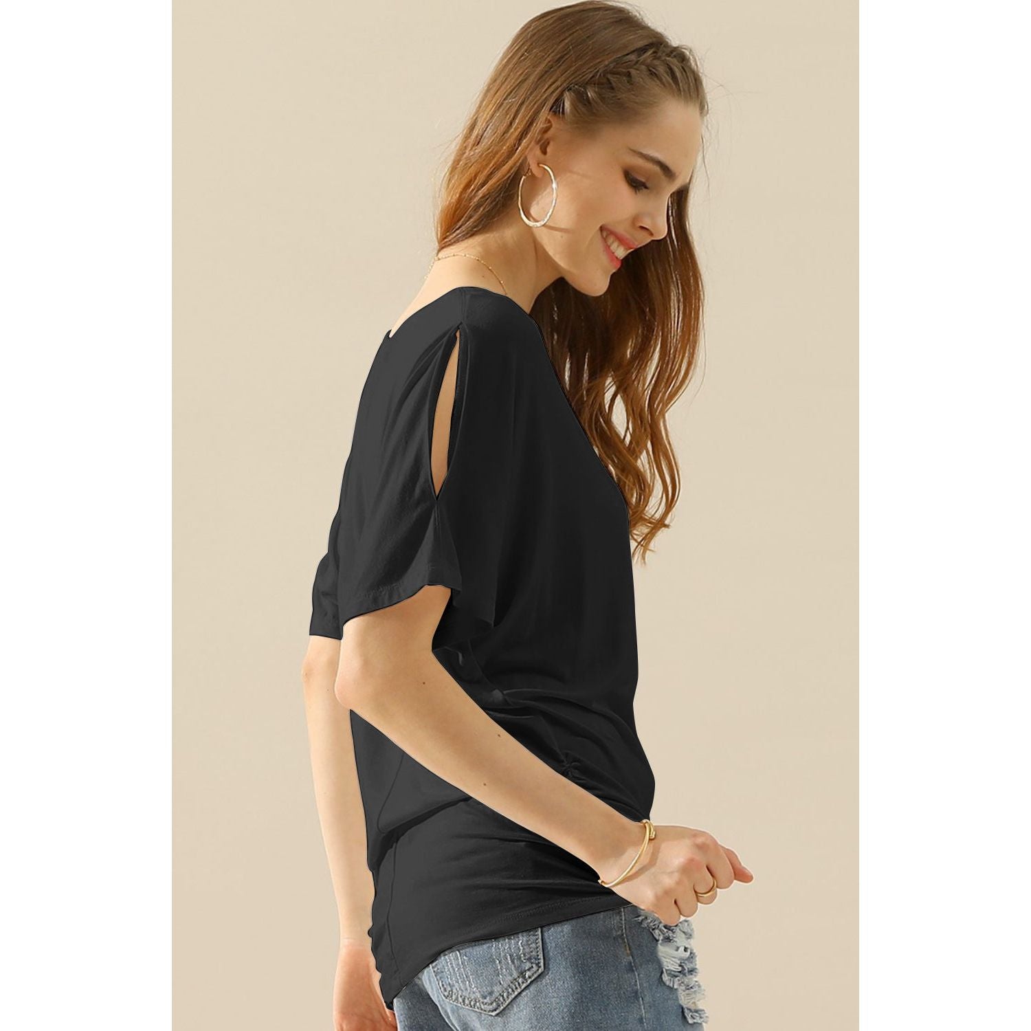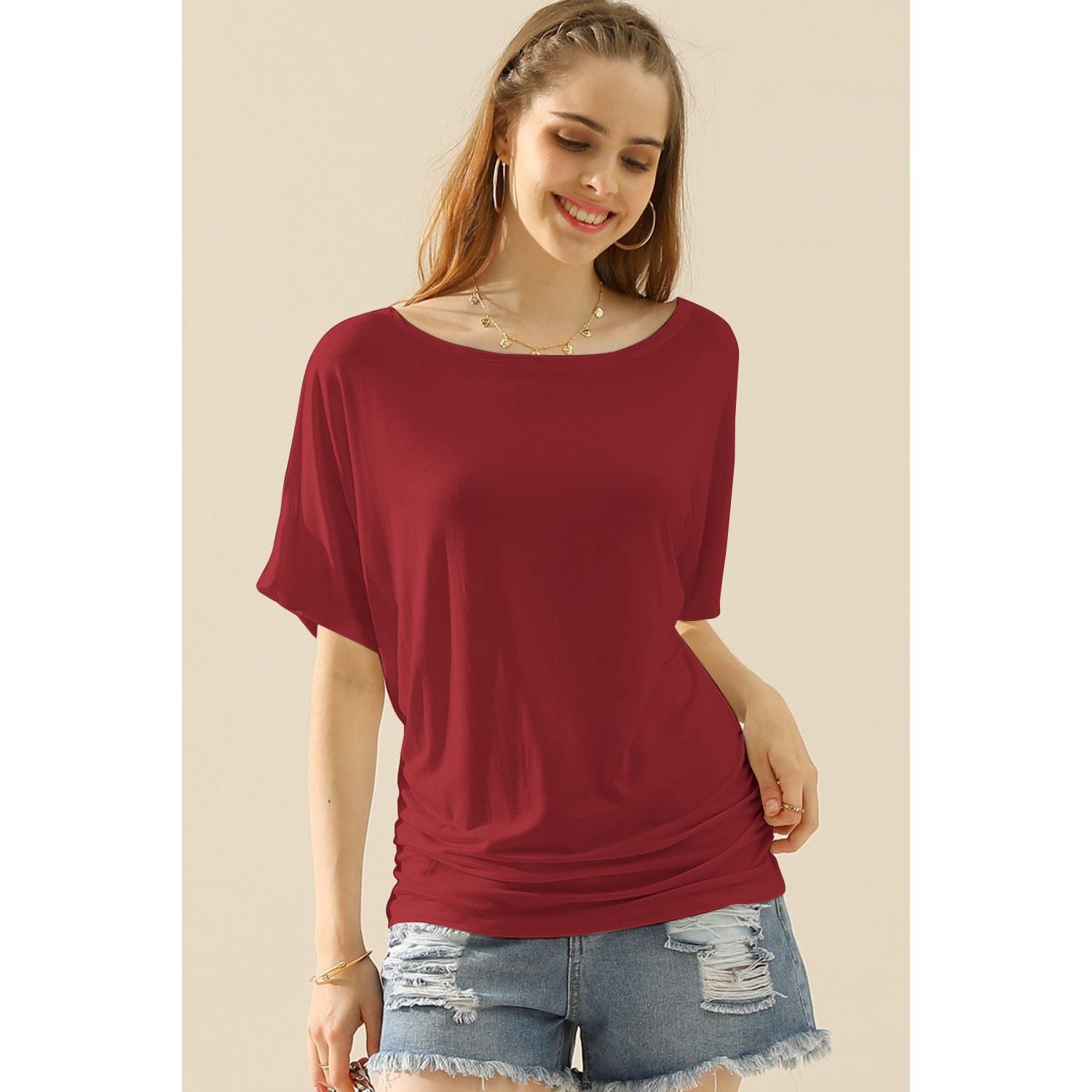 Ninexis Boat Neck Short Sleeve Ruched Side Top