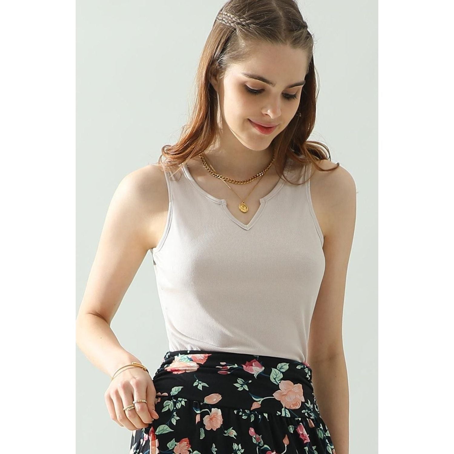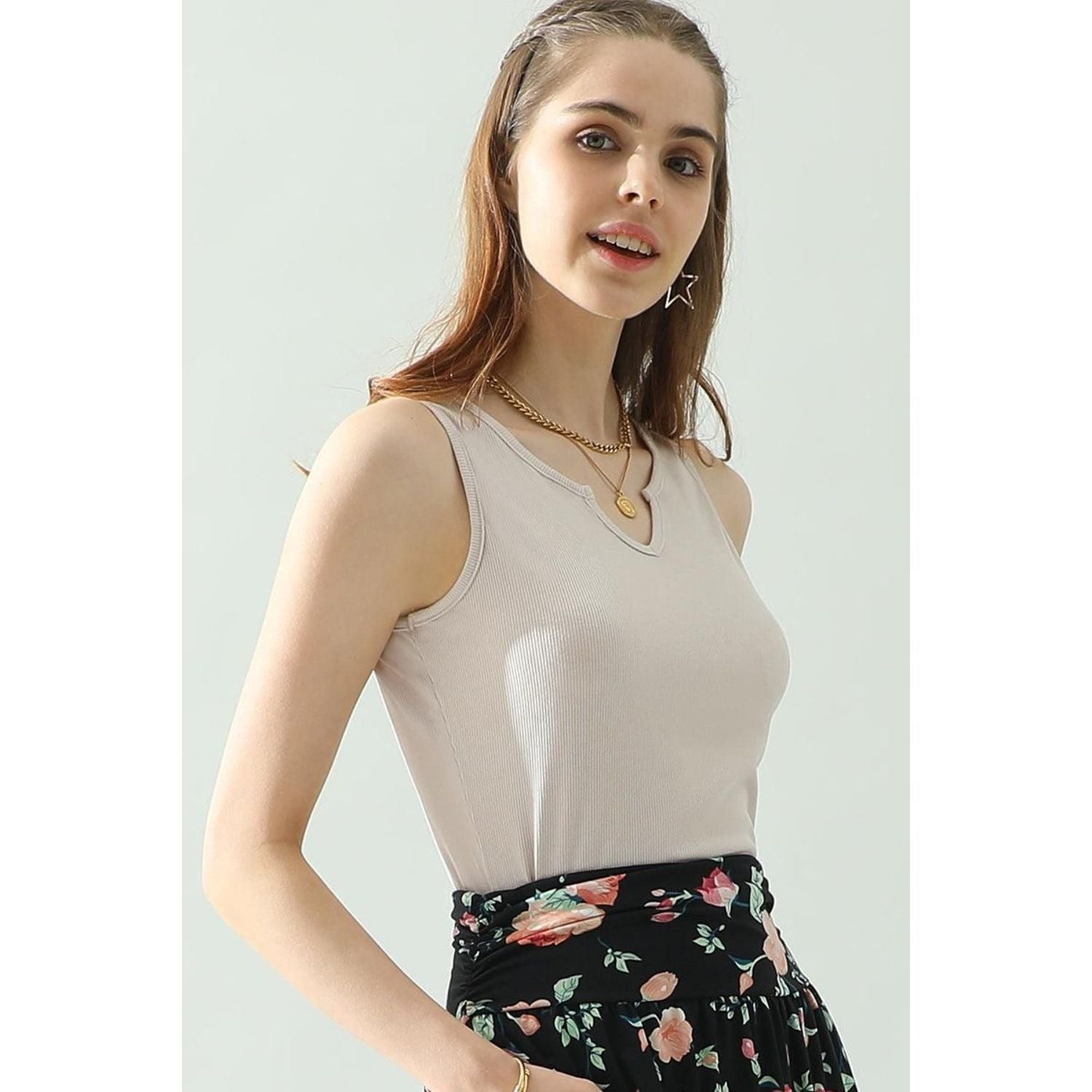 The Notched Rib Knit Tank is a versatile and trendy piece that will elevate your summer wardrobe. Its ribbed texture adds interest and dimension to any outfit. The notched neckline adds a unique and stylish touch. Made with high-quality materials, this tank is comfortable and durable. Pair it with your favorite skirt or jeans for a chic and effortless look. Available in multiple colors, it is a must-have staple for the season.