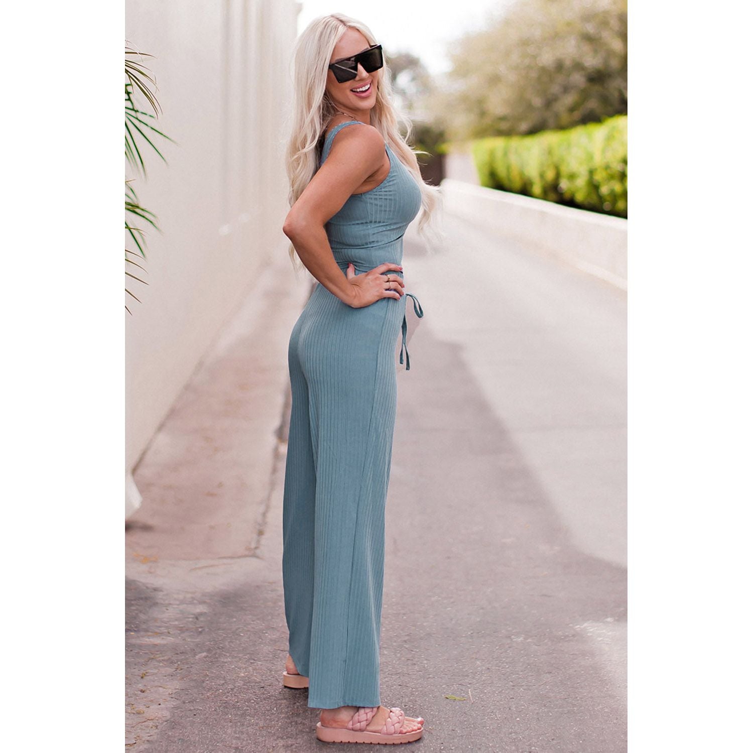 Notched Neck Tank Top and Tie Waist Wide Leg Long Pants Lounge Set