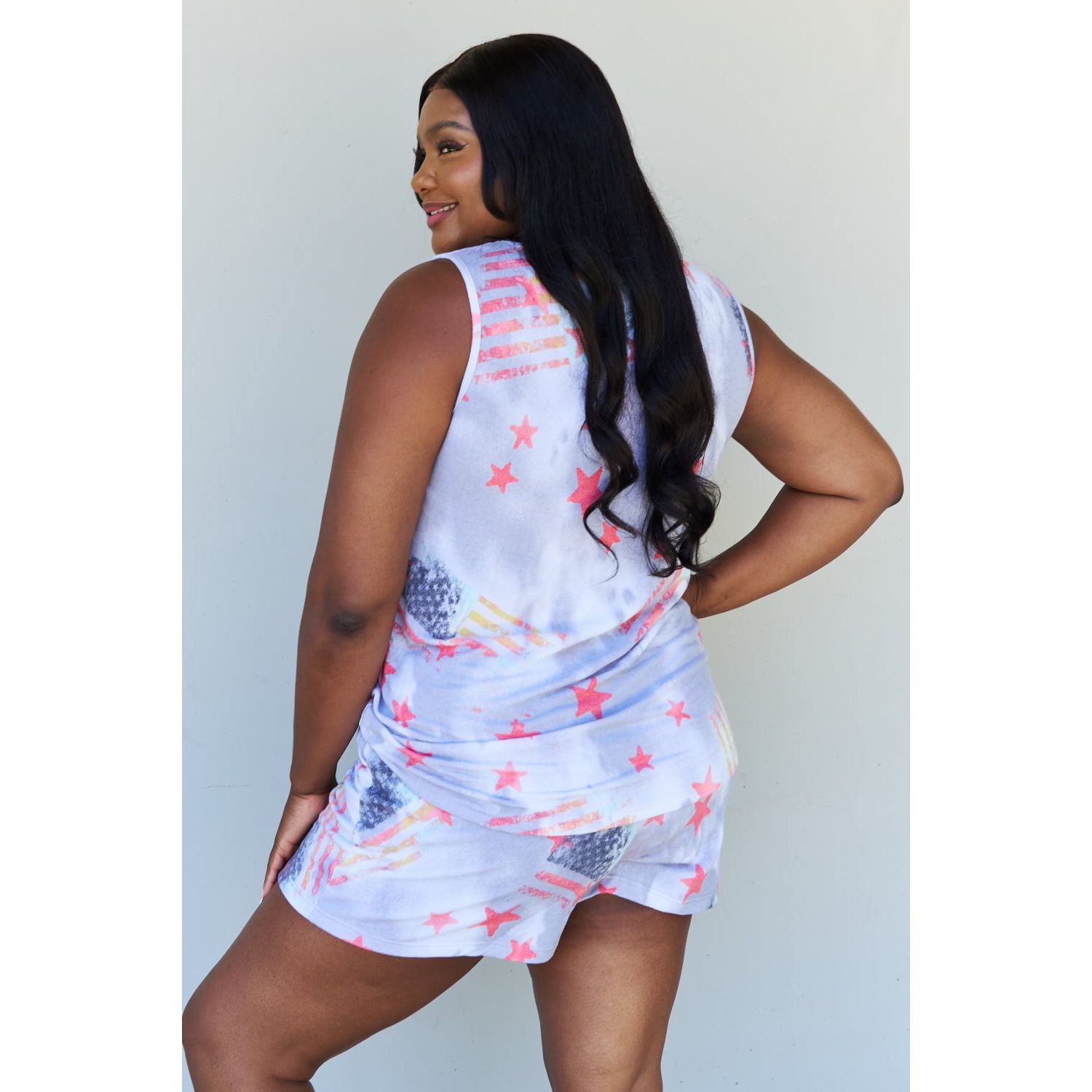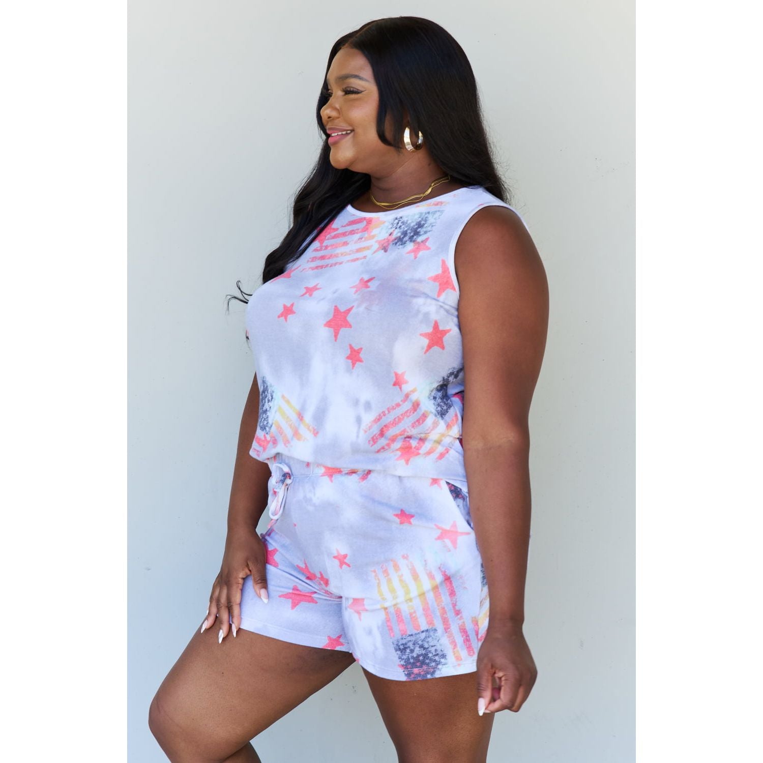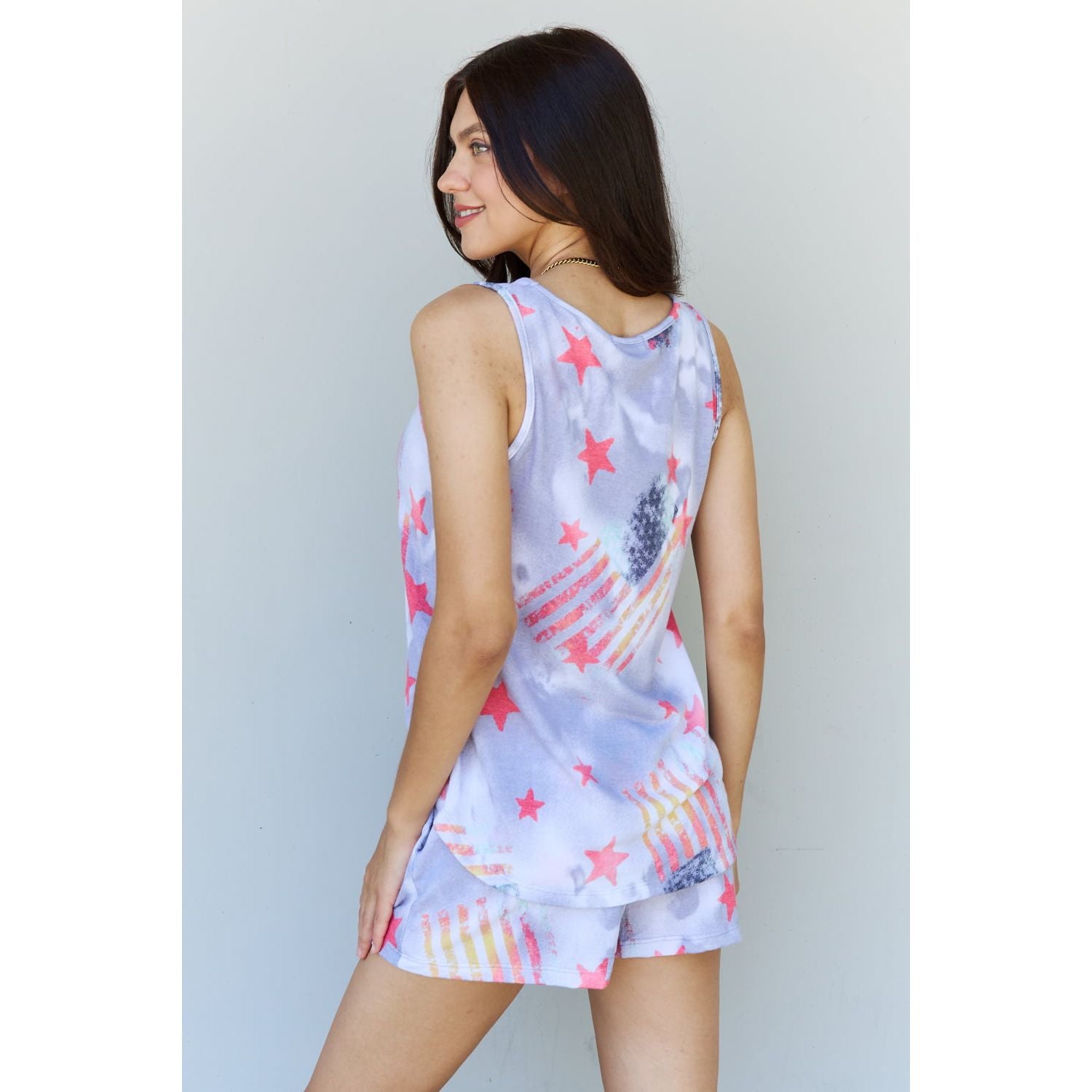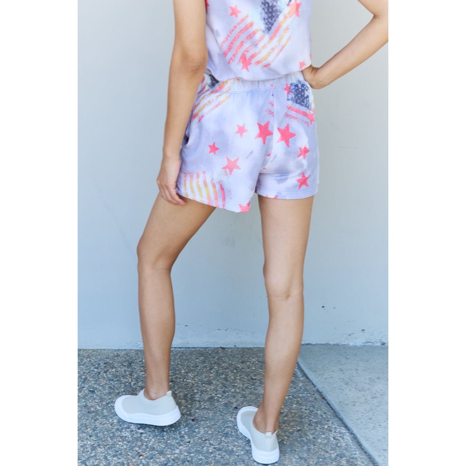 The perfect combination of comfort and style for your lounging needs. Crafted with care and designed for relaxation, this set is bound to become your go-to choice for ultimate comfort. The set includes a sleeveless top and matching shorts, both made from premium quality French terry fabric. The soft and breathable material ensures a luxurious feel against your skin, allowing you to unwind and lounge in absolute comfort. The tie-dye star print adds a touch of playfulness and uniqueness to the set. Each piece is meticulously tie-dyed, creating a stunning pattern of vibrant colors that will make you stand out from the crowd. The star motif adds a whimsical touch, adding an element of fun to your loungewear collection. The sleeveless top is designed for ease of movement and features a relaxed fit. It allows you to move freely without any restrictions, making it ideal for lounging around the house or running errands. The shorts are equally comfortable and come with an adjustable drawstring waist, allowing you to customize the fit according to your preference.