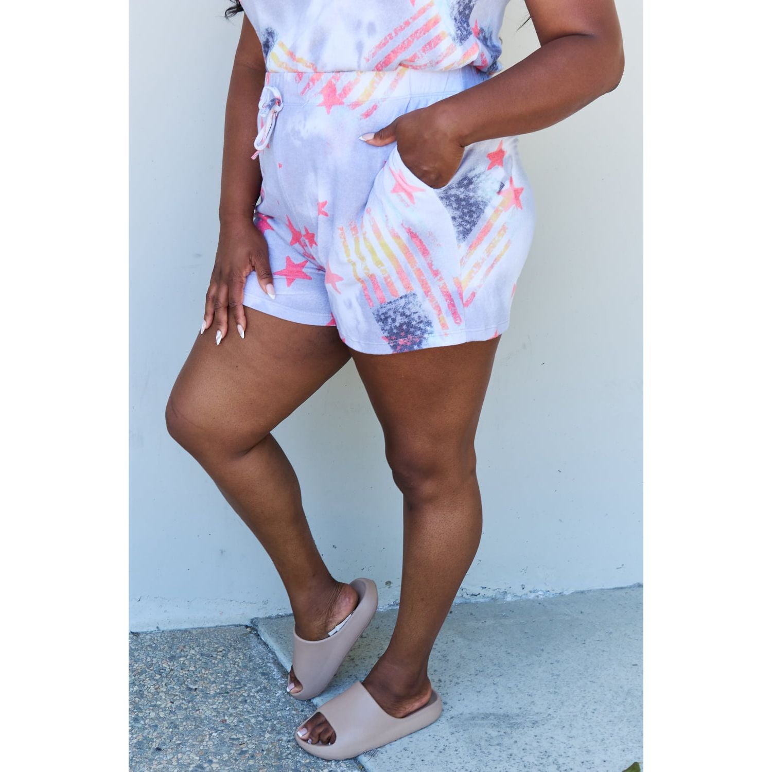 ODDI Full Size Tie-Dye Star Printed Loungewear Set