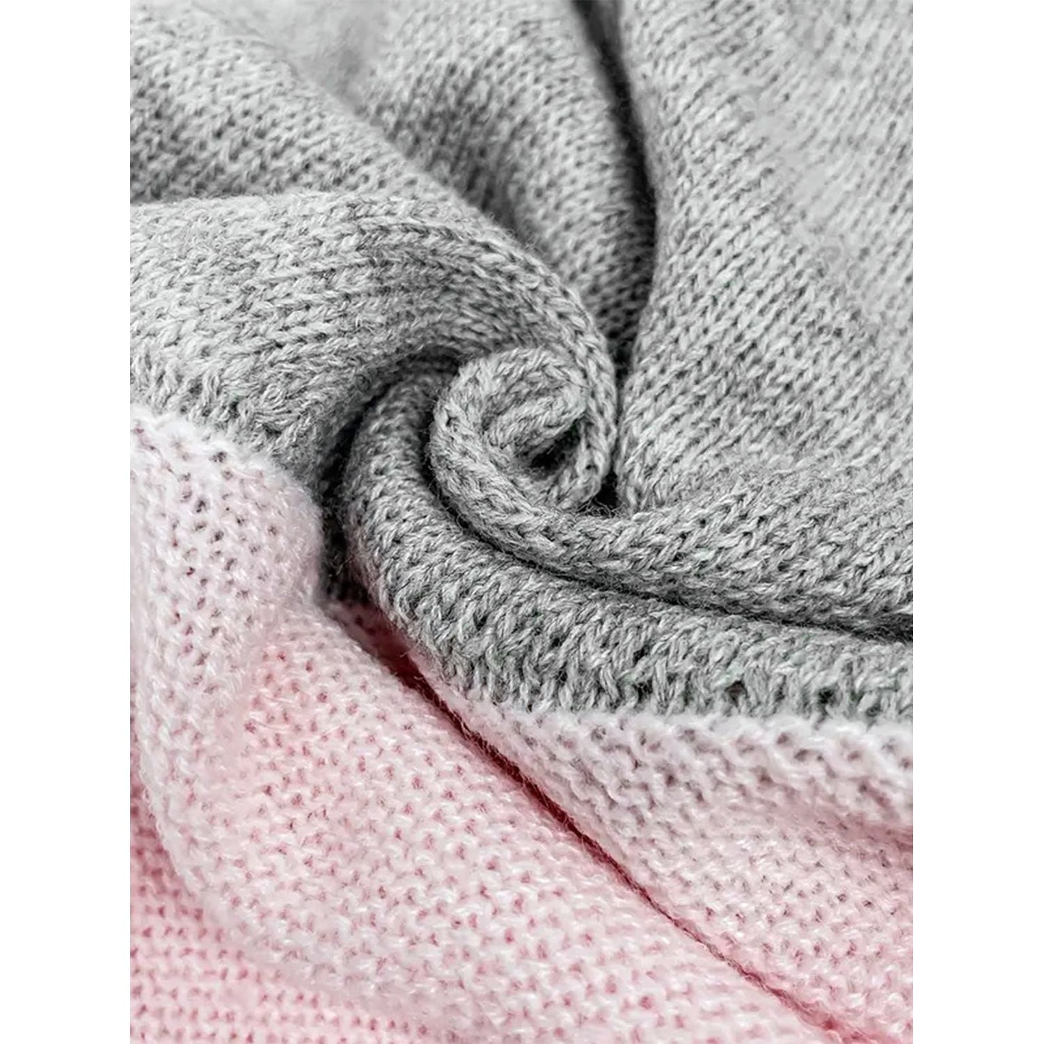 Openwork Contrast Round Neck Long Sleeve Knit Top