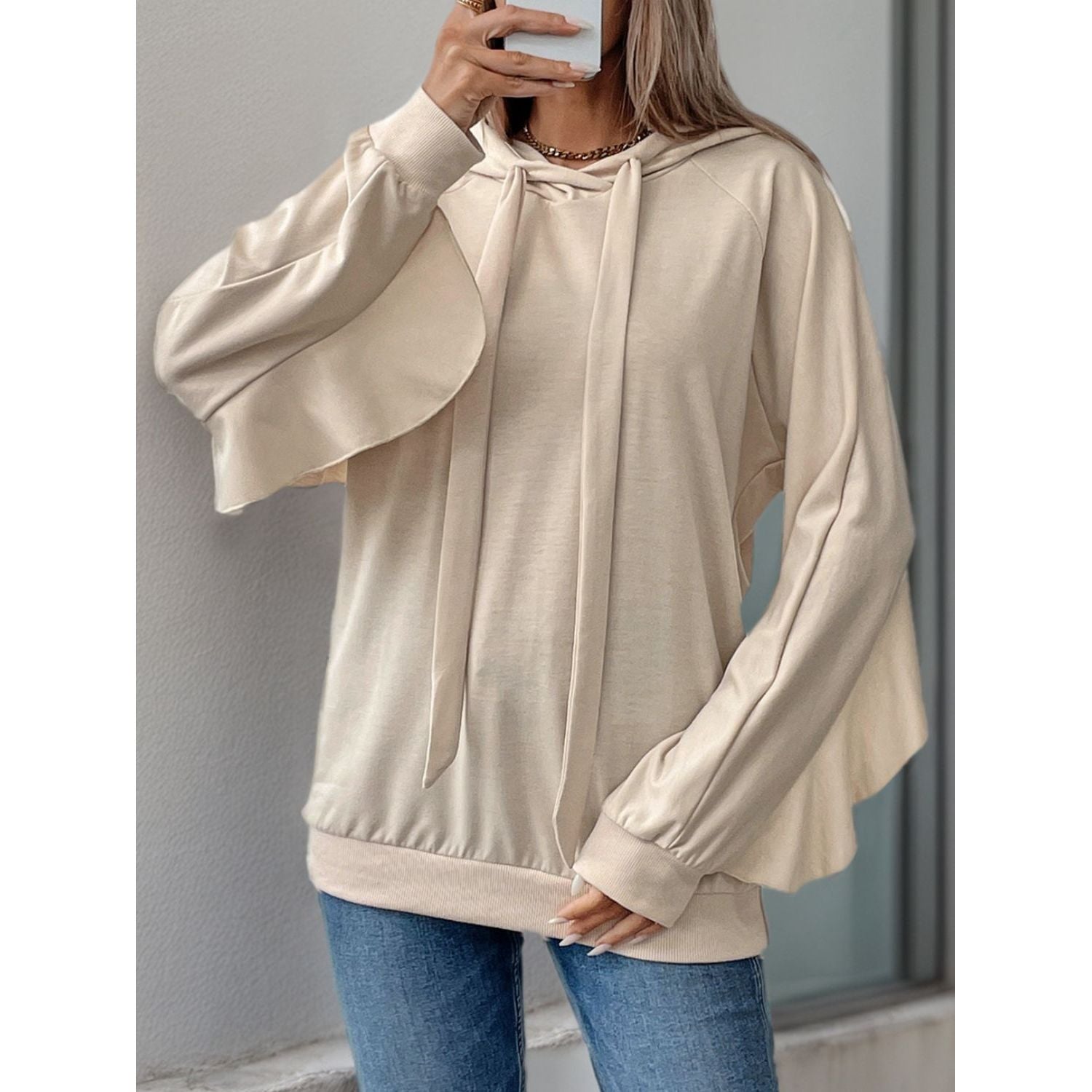 Perfee Drawstring Ruffled Long Sleeve Hoodie