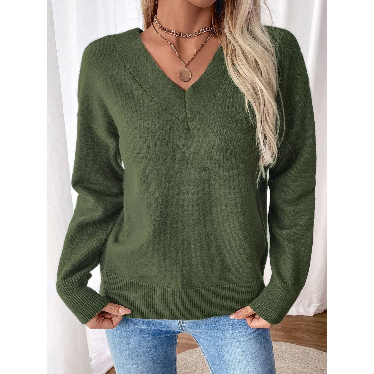 Perfee Twisted V-Neck Long Sleeve Sweatshirt