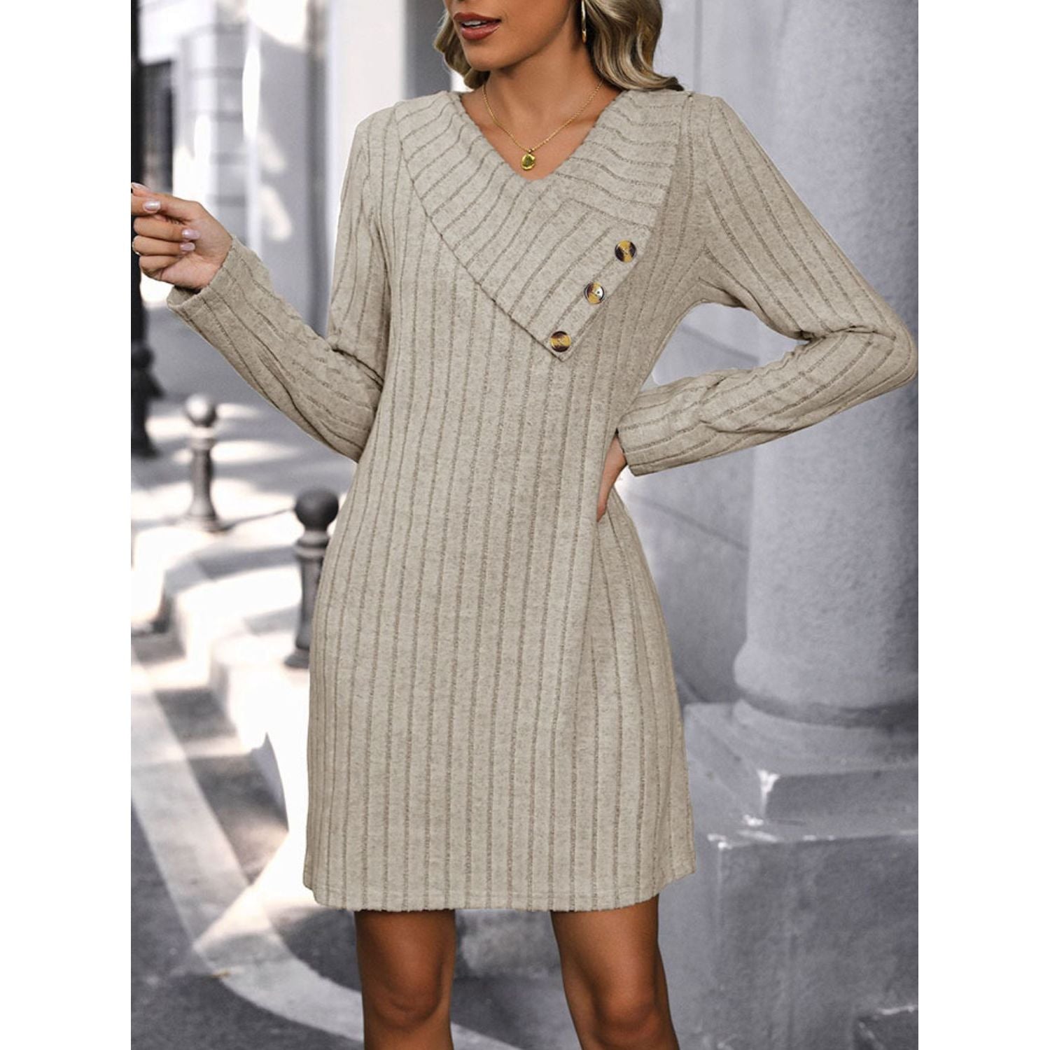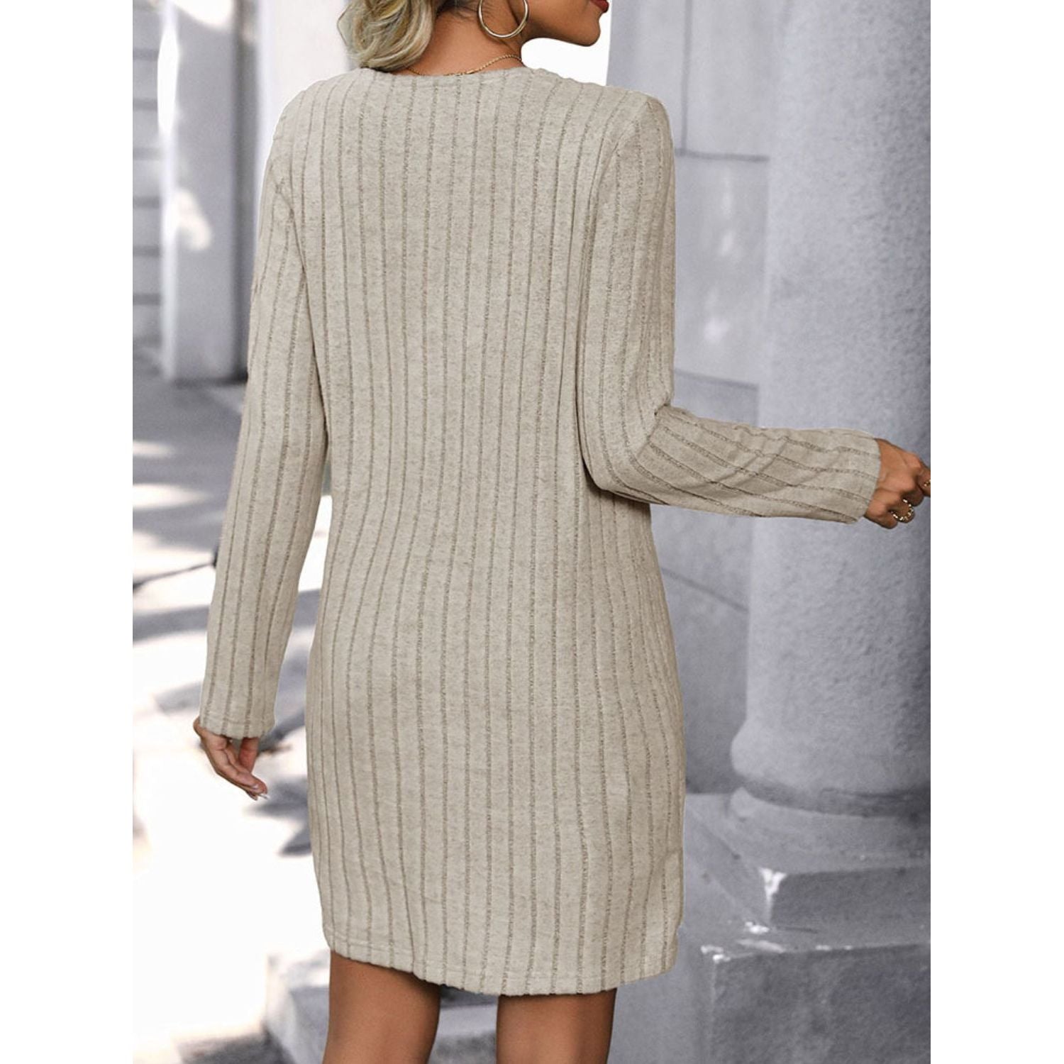 Perfee V-Neck Long Sleeve Knit Dress