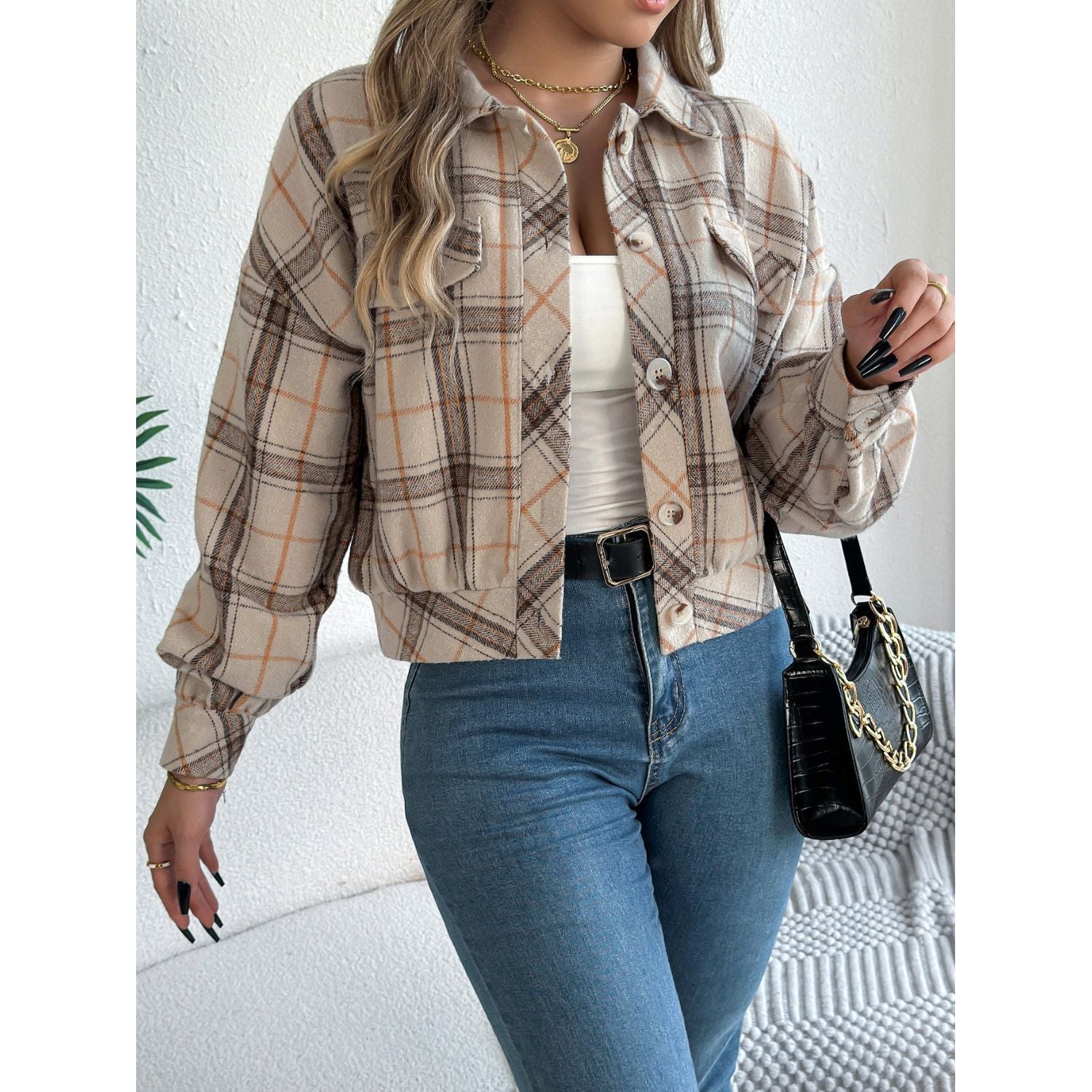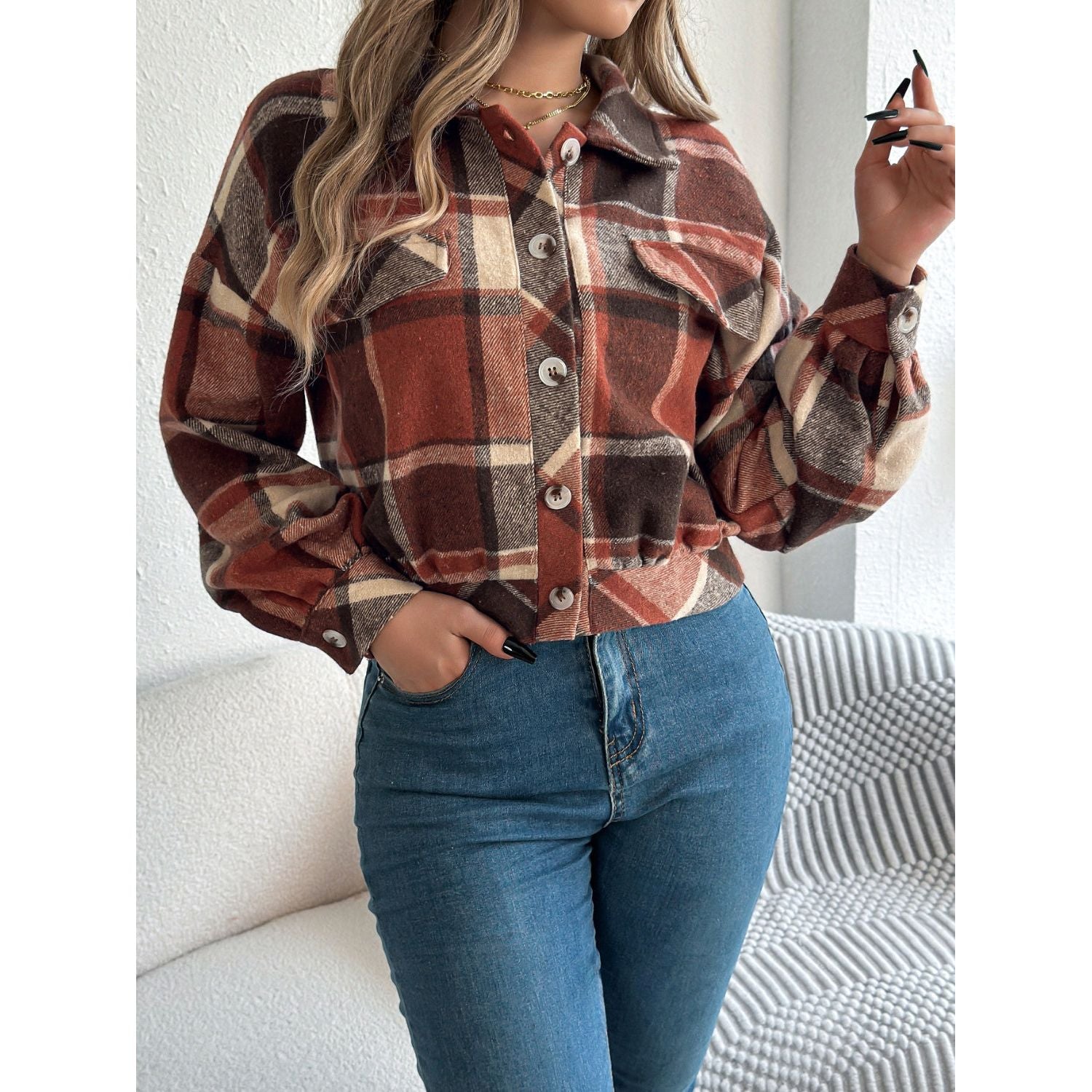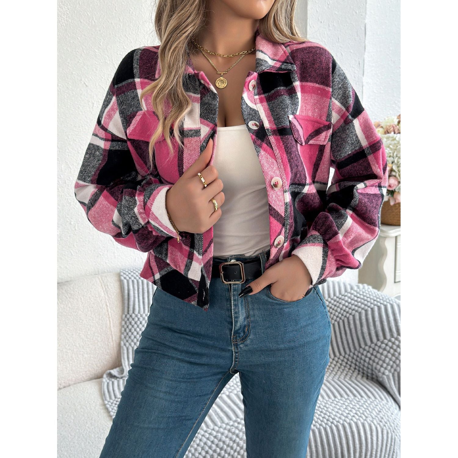 Plaid Button Up Long Sleeve Jacket