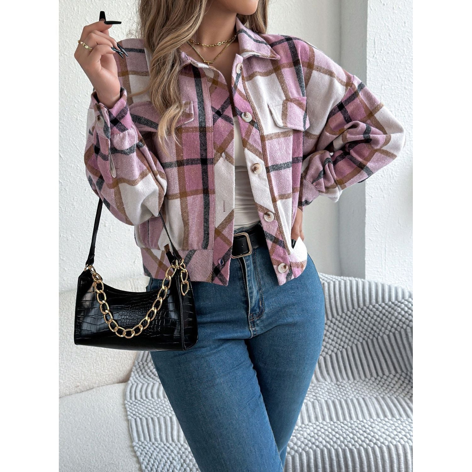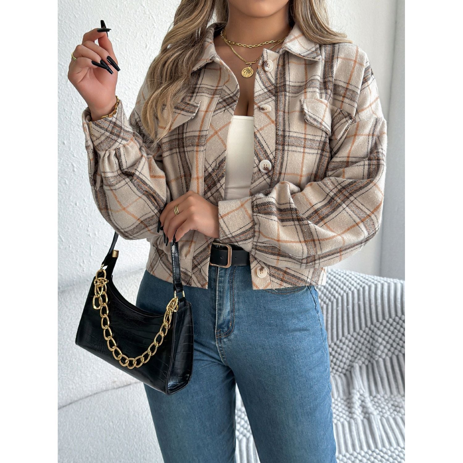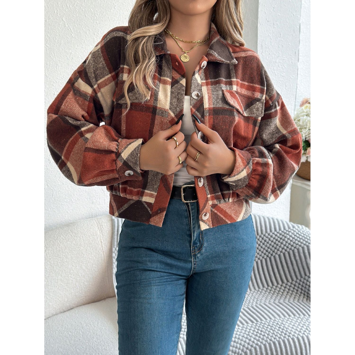 Plaid Button Up Long Sleeve Jacket