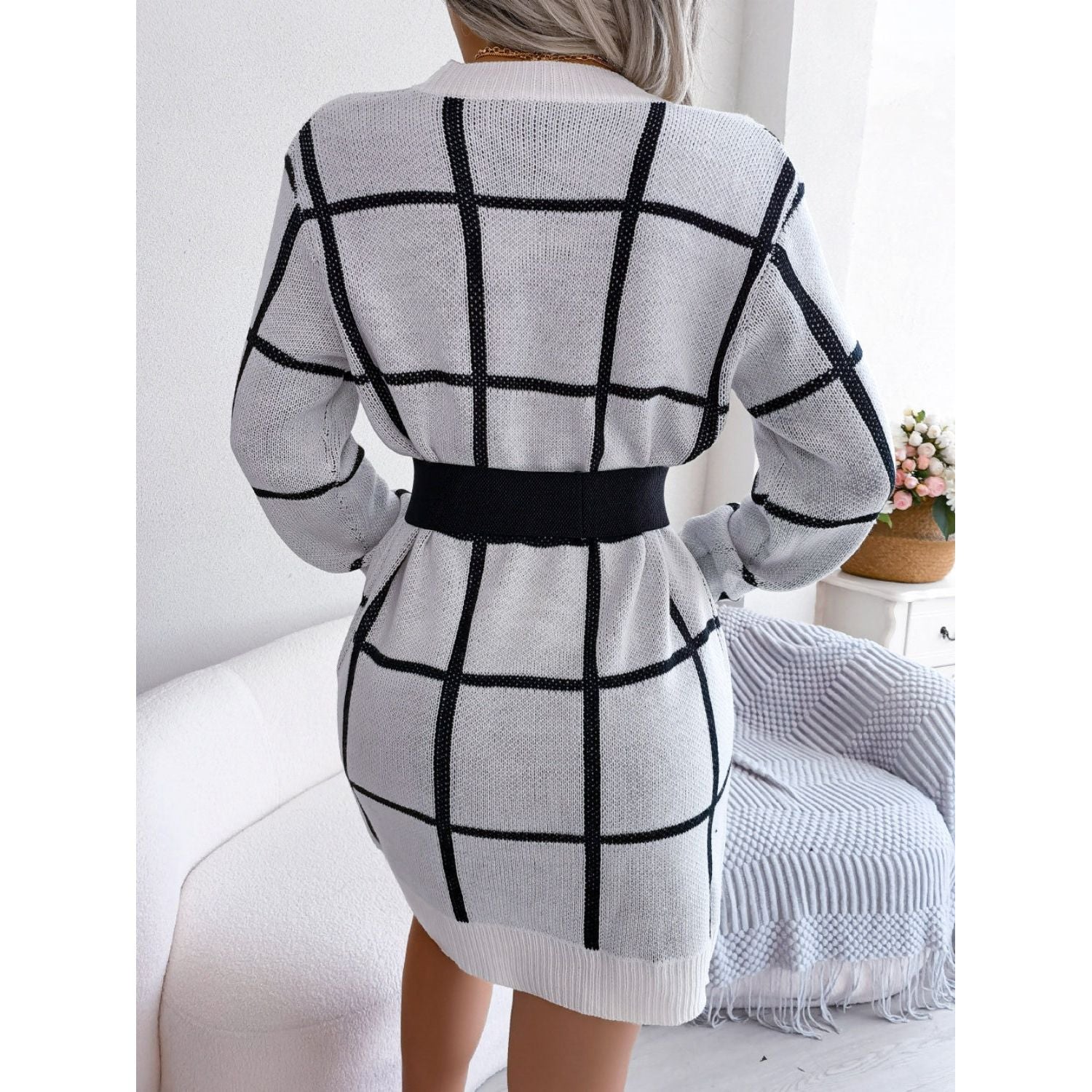 Plaid Round Neck Dropped Shoulder Sweater Dress