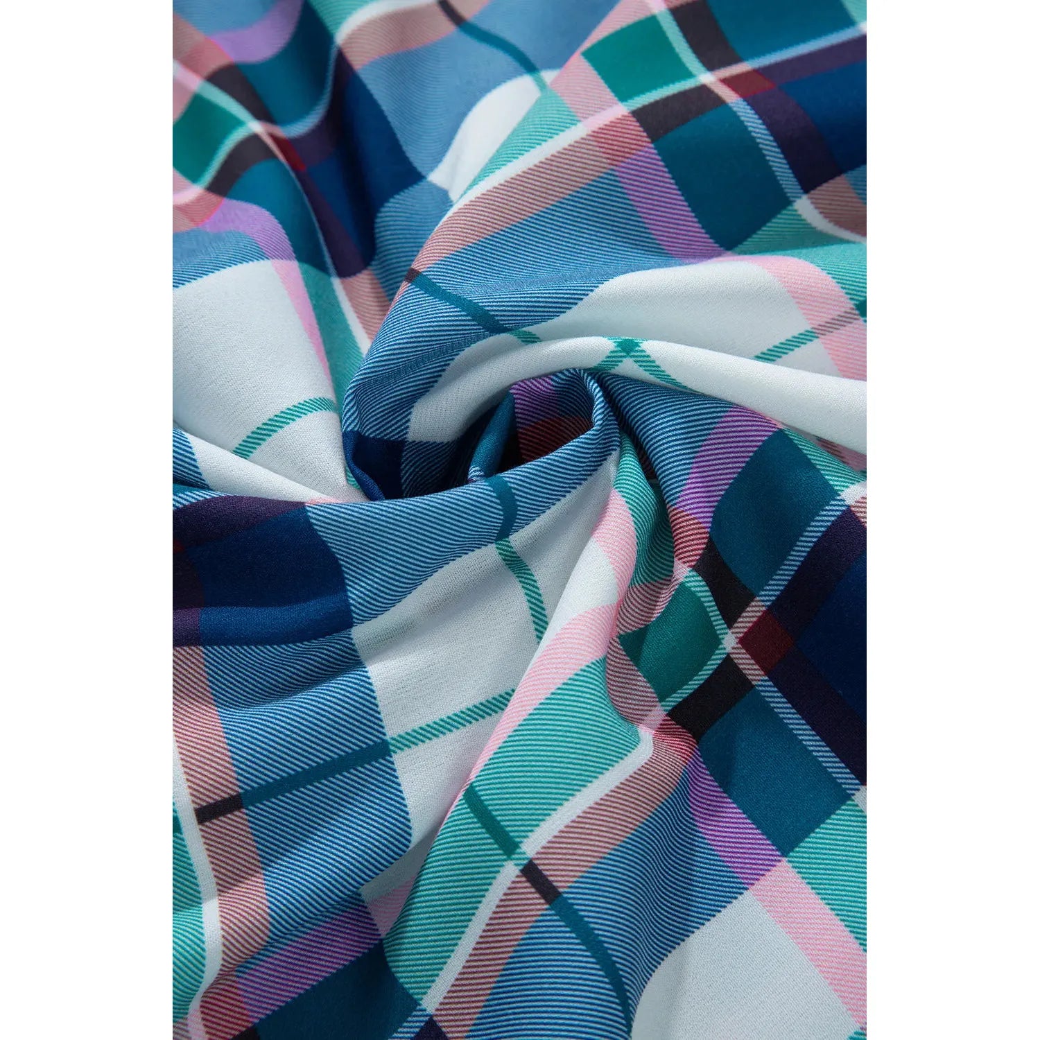 Plaid Snap Down Long Sleeve Top and Shorts Lounge Set