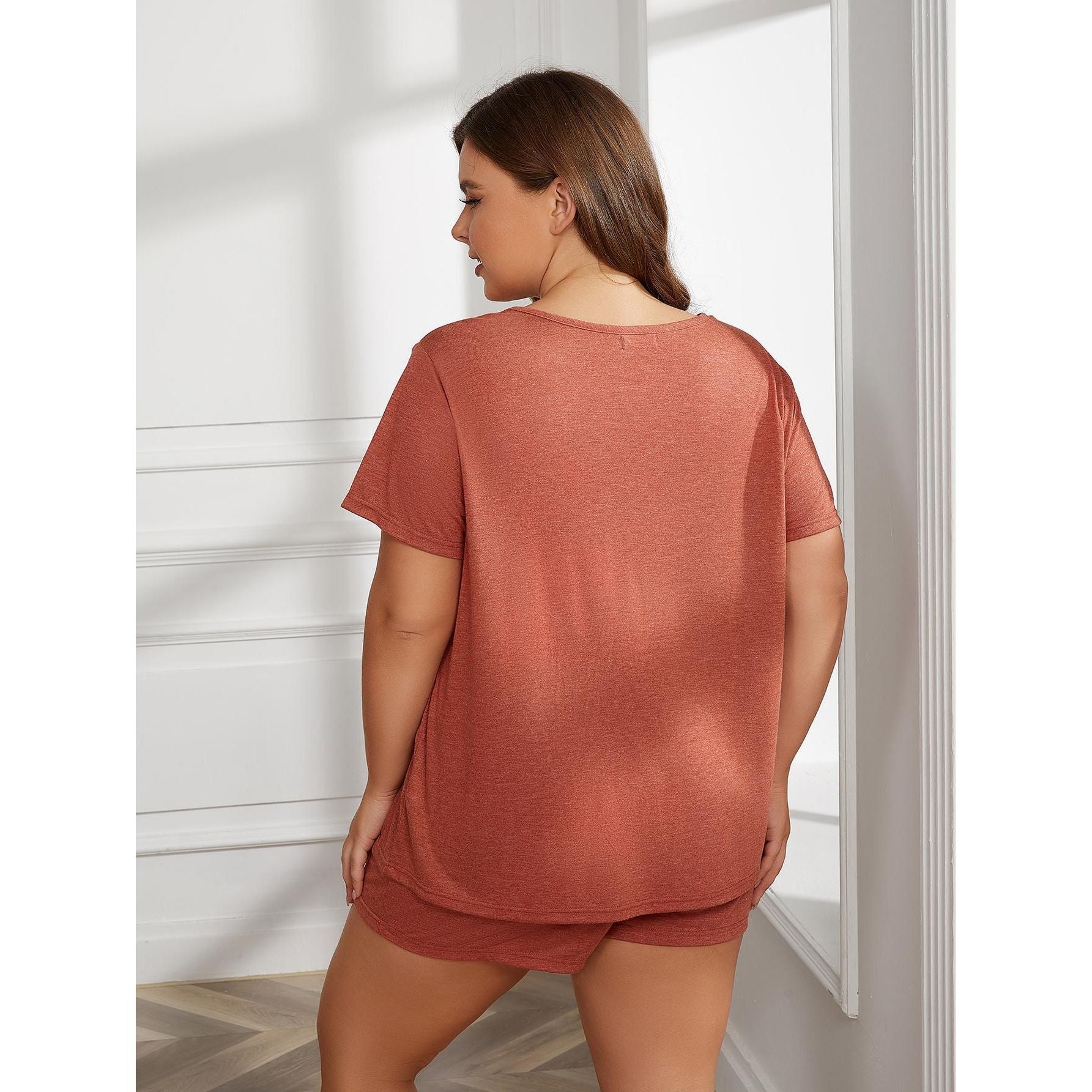 Plus Size Round Neck Short Sleeve Two-Piece Loungewear Set