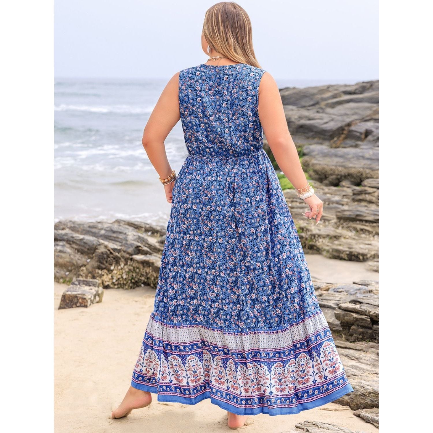 Plus Size Tied Printed Sleeveless Maxi Dress