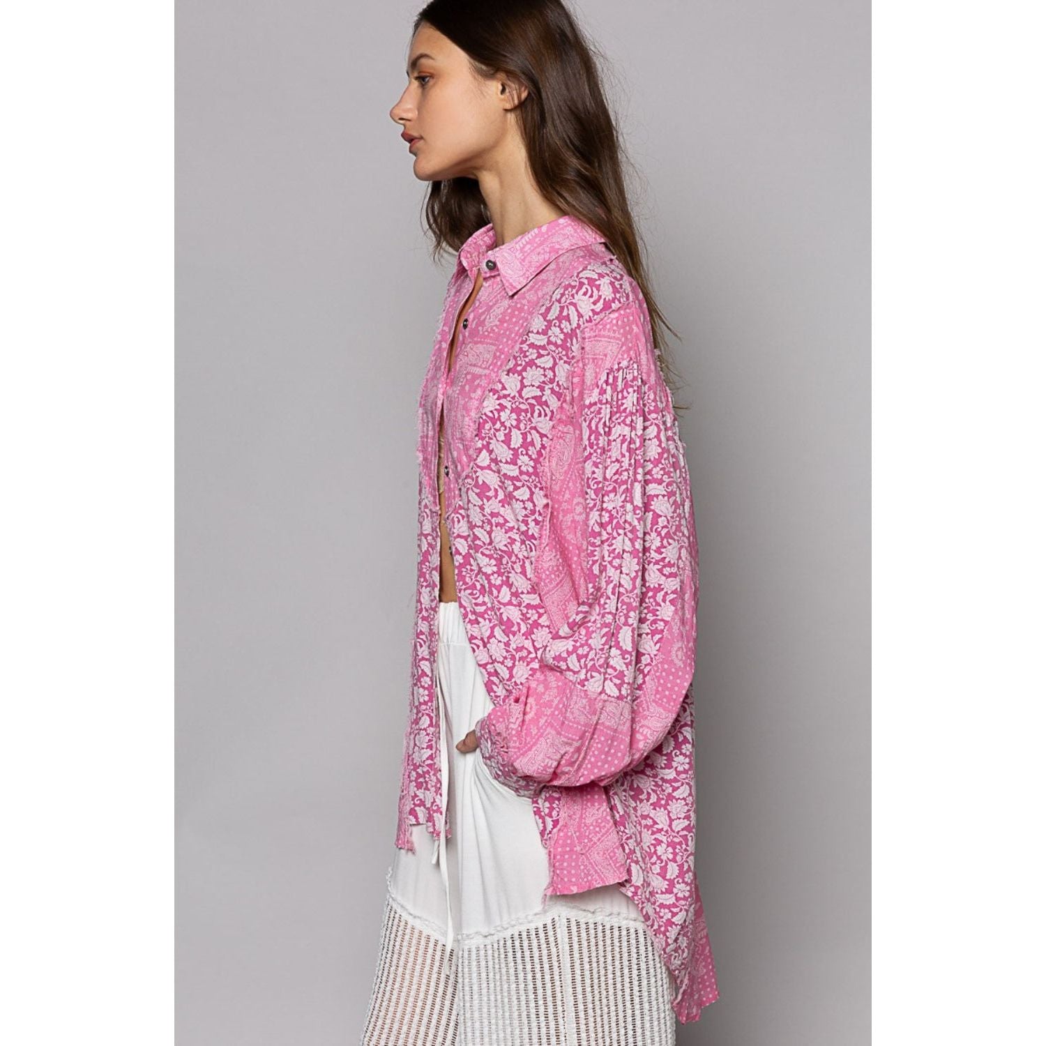 Introducing the Button Down Long Sleeve Paisley Print Shirt, a stylish choice for a relaxed and oversized fit. This shirt features a classic button-down design with a trendy paisley pattern, perfect for adding a touch of elegance to your outfit. The long sleeves provide extra coverage and warmth, making it a versatile piece for all seasons. The oversized fit adds a modern and comfortable feel to the shirt, ideal for casual or semi-formal occasions. Elevate your look with this effortlessly cool and trendy piece that exudes sophistication and charm.