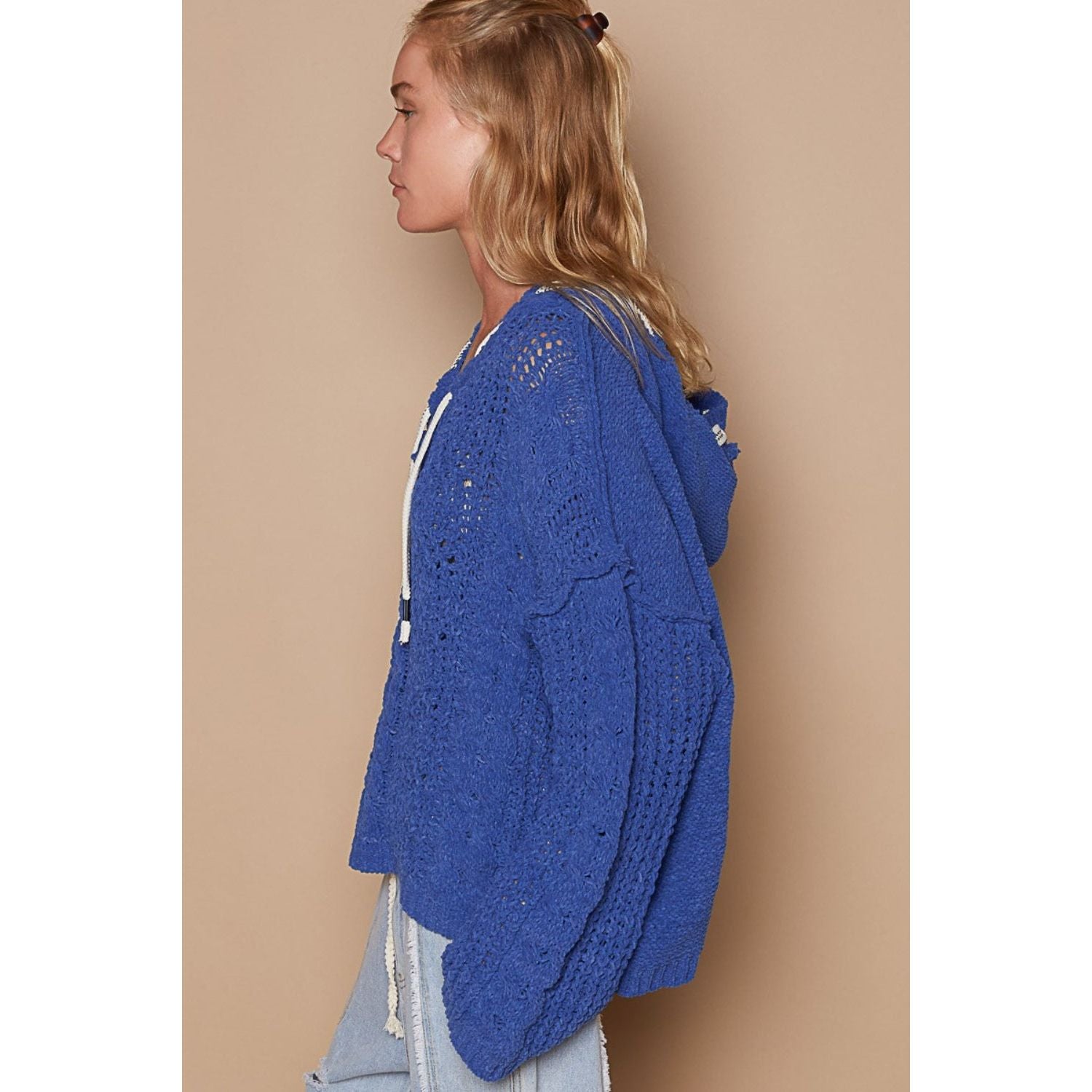 POL Cable Knit Hooded Chenille Sweater