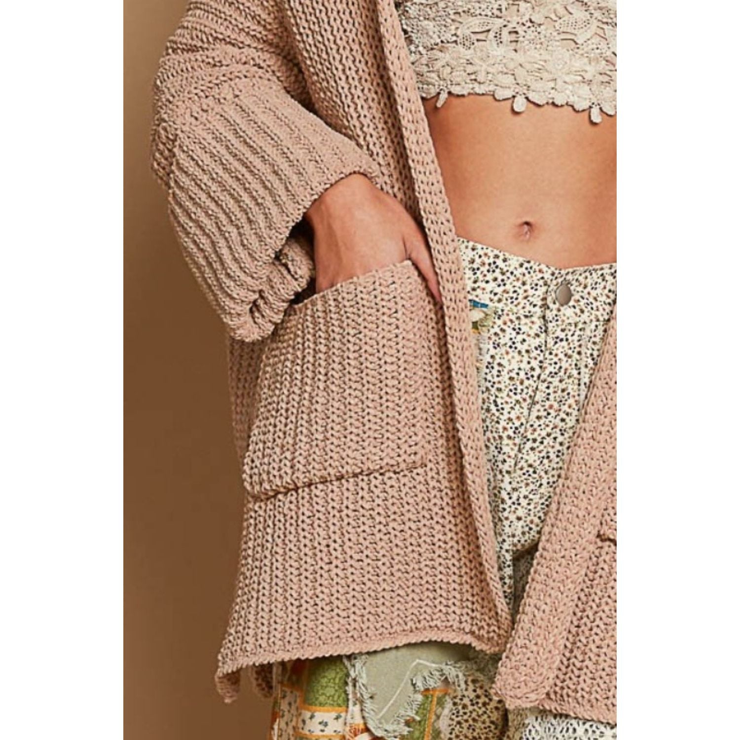 The Open Front Sweater Cardigan with Pockets is a versatile and stylish layering piece that combines cozy comfort with practicality. Featuring an open front design, this cardigan can be effortlessly styled over any outfit for added warmth and sophistication. The addition of pockets adds functionality and convenience, allowing you to keep essentials close at hand. The soft fabric provides a comfortable and cozy feel, making it perfect for all-day wear. Elevate your look with this chic and functional cardigan that is perfect for transitioning between seasons. Stay on-trend and cozy with the Open Front Sweater Cardigan with Pockets - a must-have addition to your wardrobe.