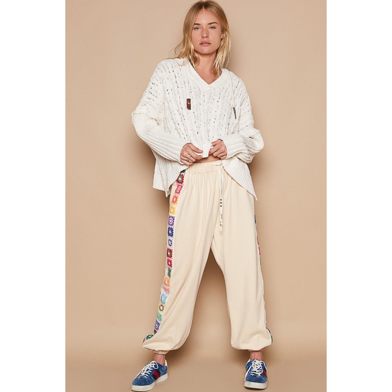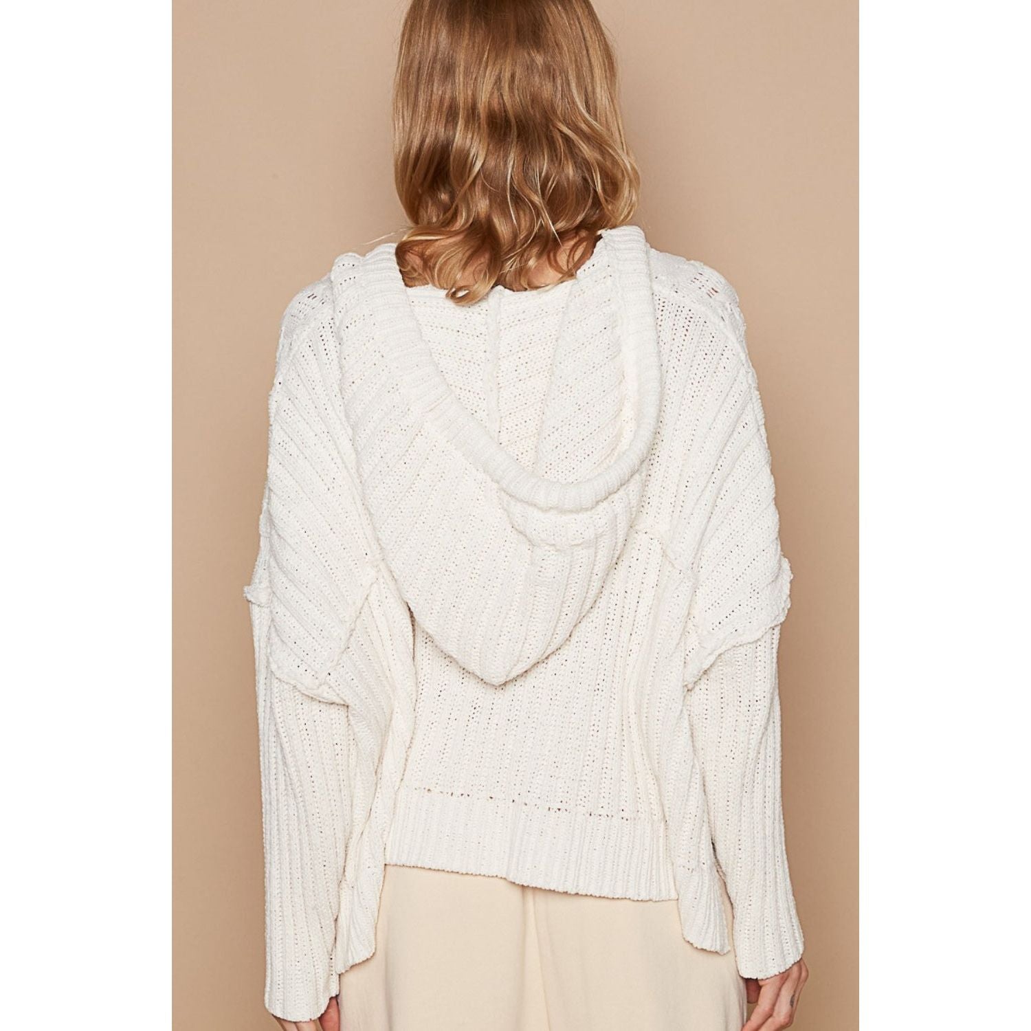 POL Rib Weave Sleeves Hooded Cable Knit Sweater