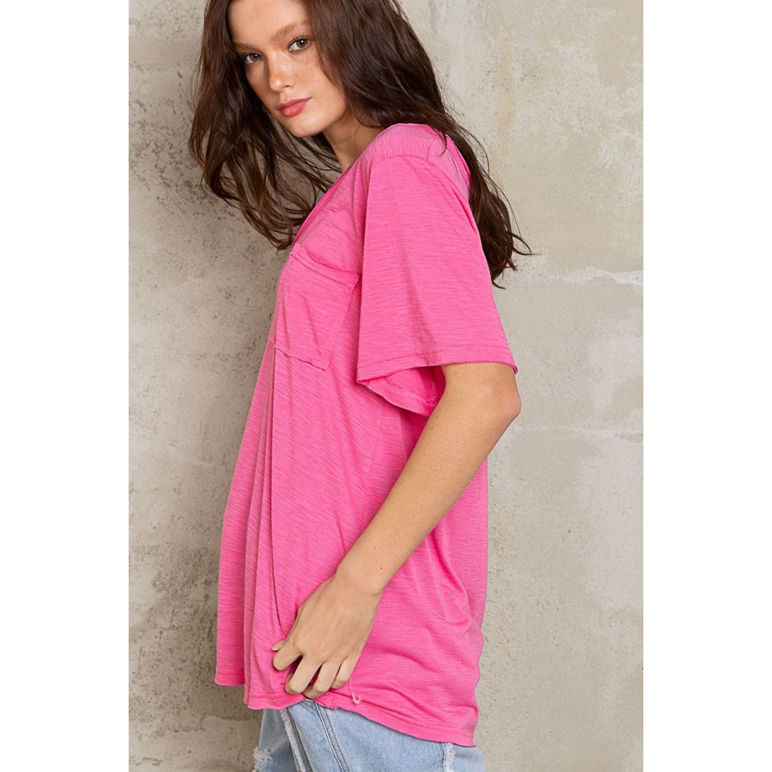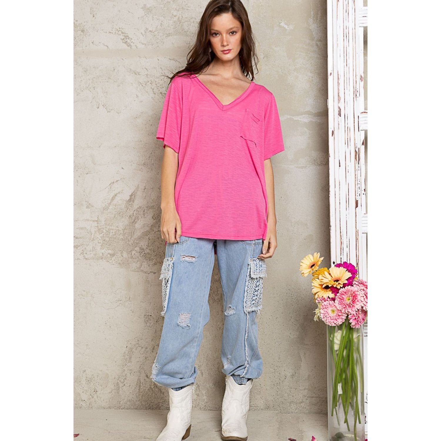 The v-neck, short-sleeved tee with a chest pocket and loose fit is a classic and versatile addition to your casual wardrobe. Made from a knit slub fabric, this tee offers a comfortable and laid-back feel, perfect for everyday wear. The chest pocket adds a stylish detail to the design, while the loose fit ensures a relaxed and effortless look. Pair this casual tee with your favorite jeans or shorts for a timeless and easygoing outfit. Enjoy the comfort and style of this must-have knit tee.