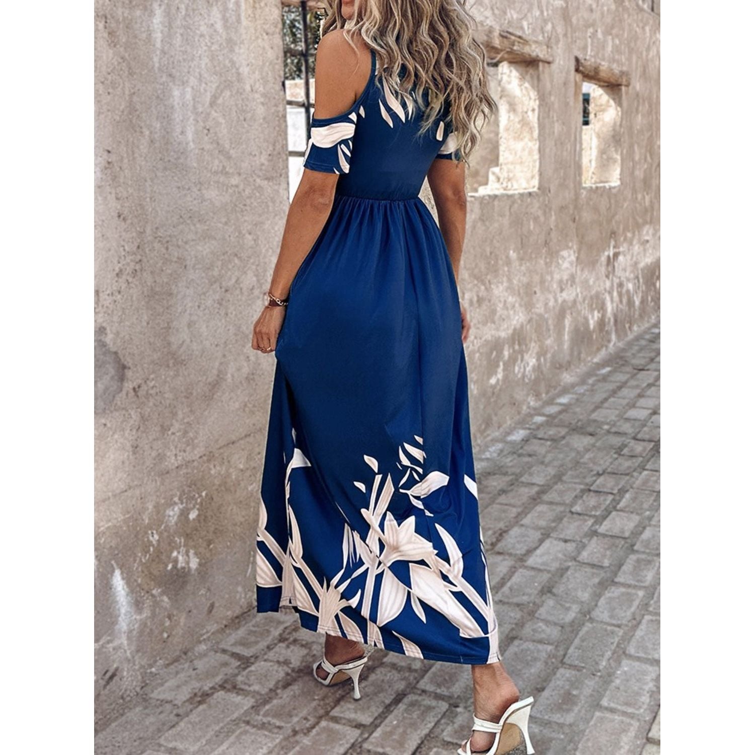 Printed Cold Shoulder Short Sleeve Maxi Dress