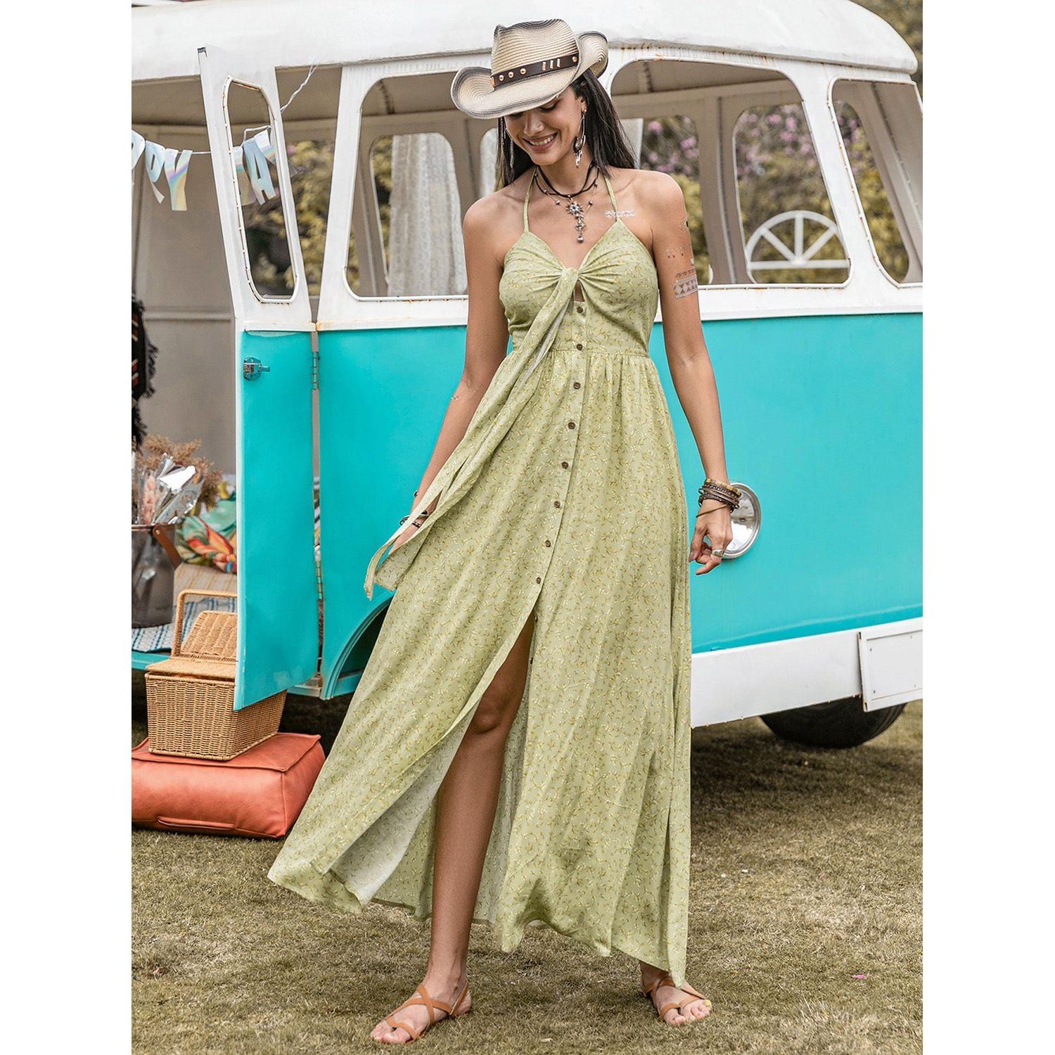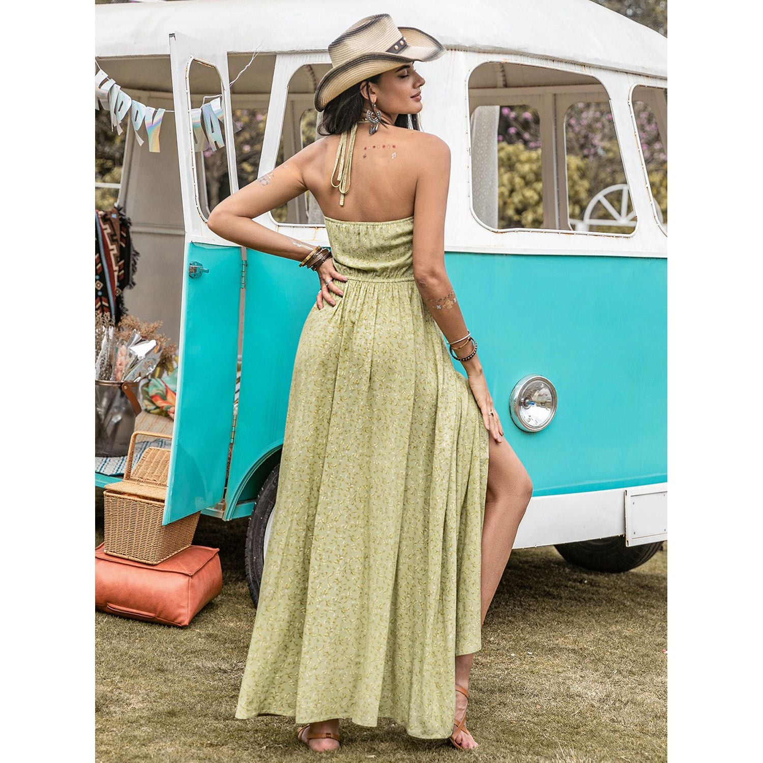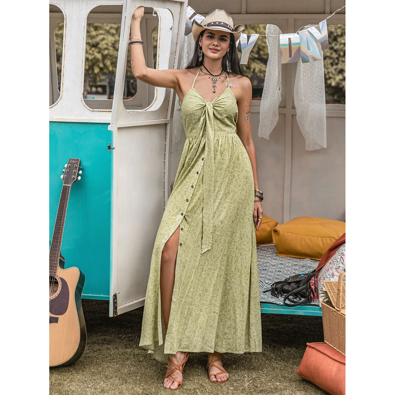 Printed Halter Neck Maxi Dress