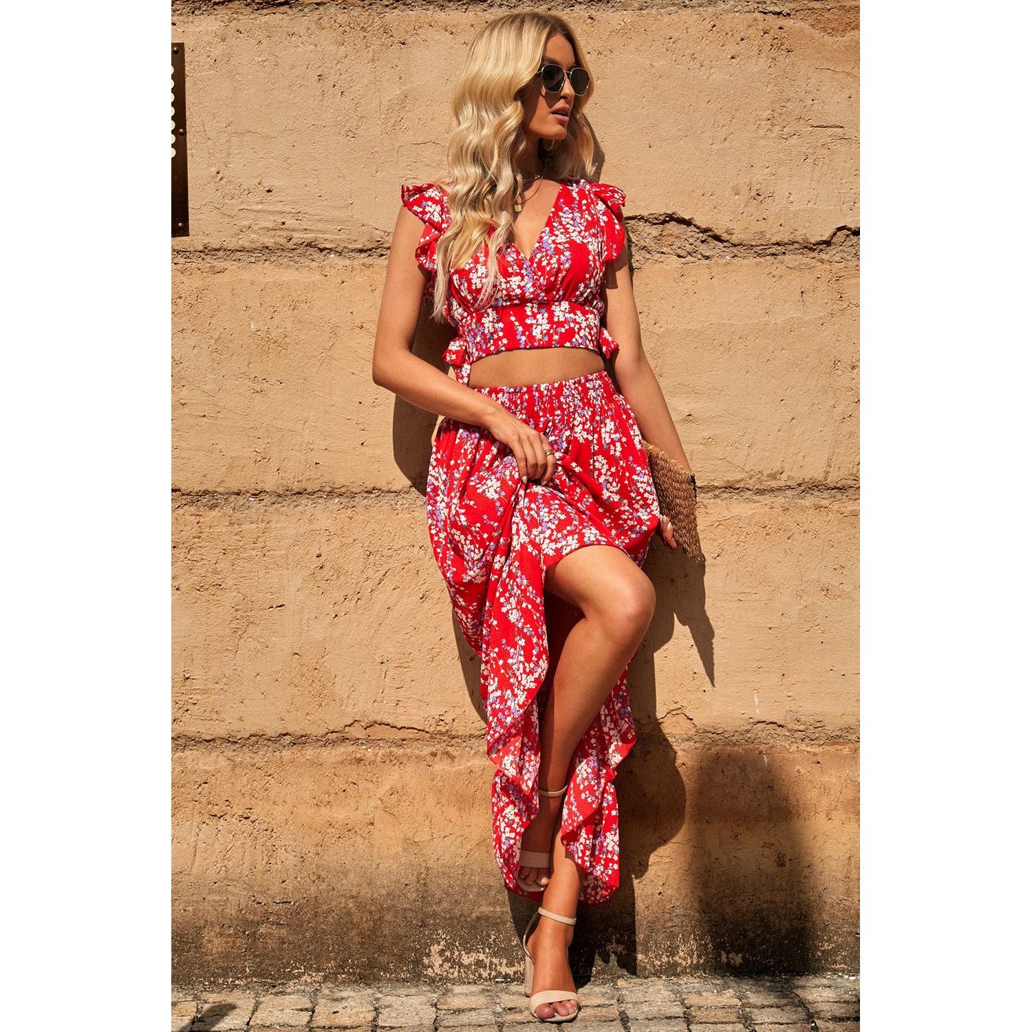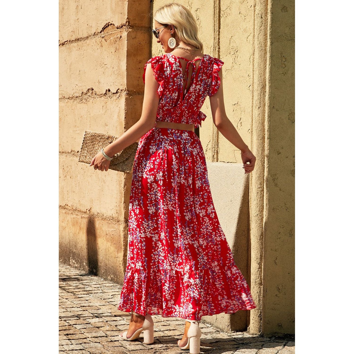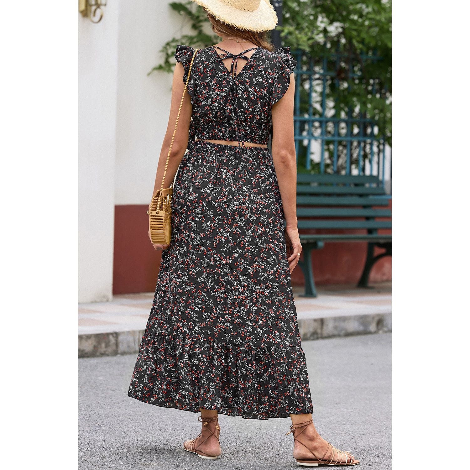 Printed Tie Back Cropped Top and Maxi Skirt Set