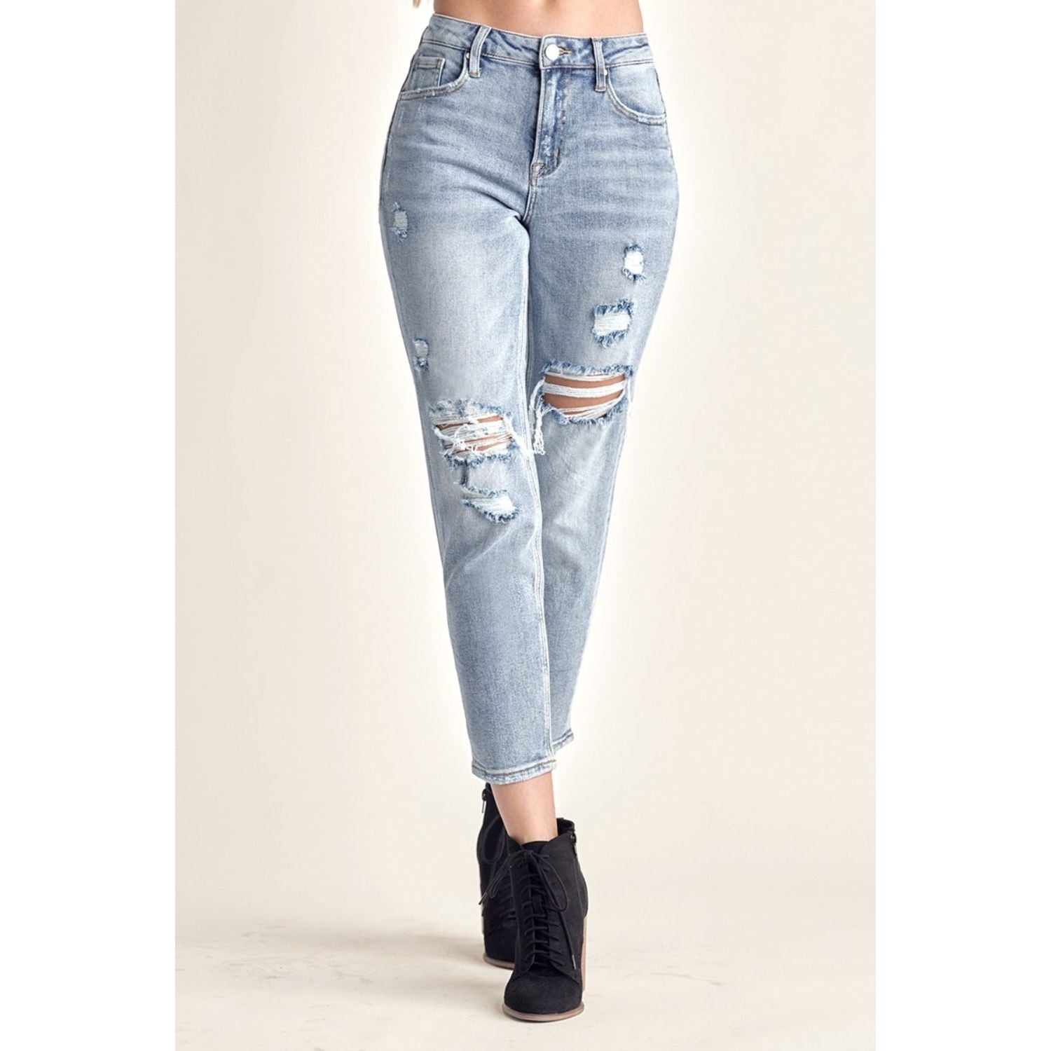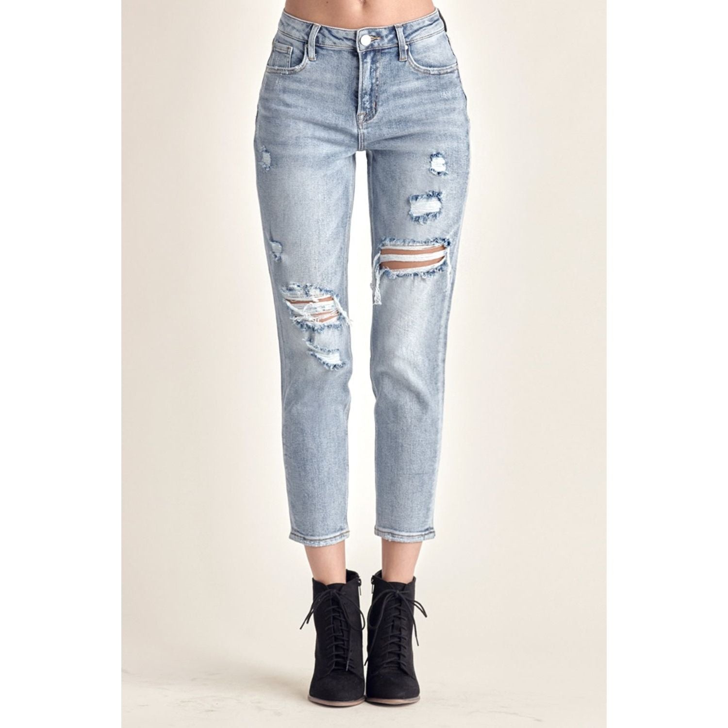 RISEN Distressed Slim Cropped Jeans