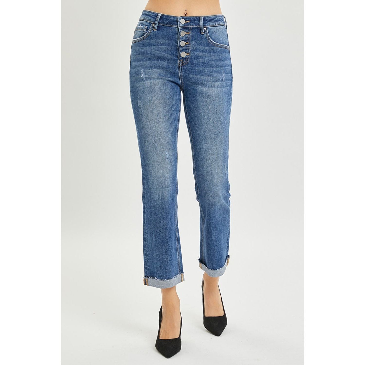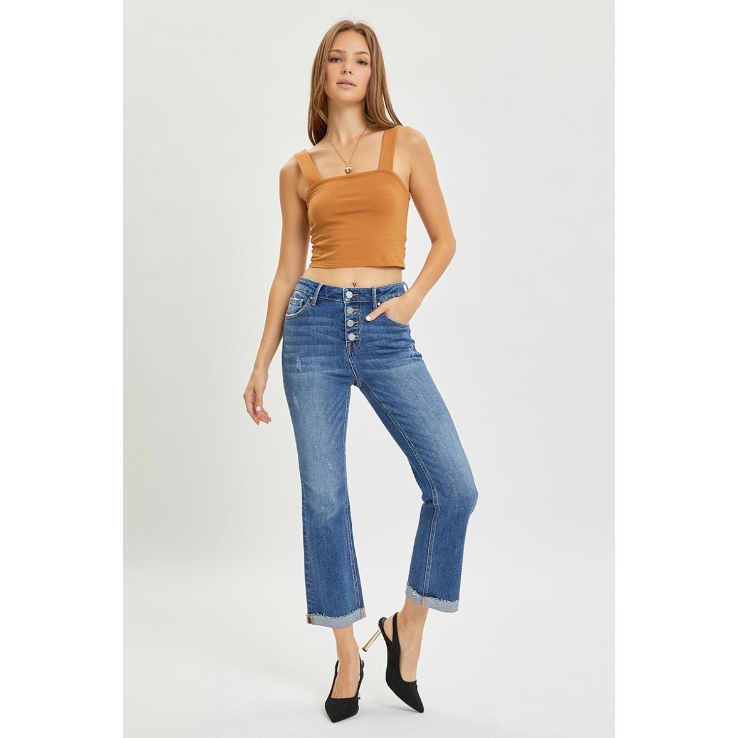 RISEN Full Size Button Fly Cropped Bootcut Jeans