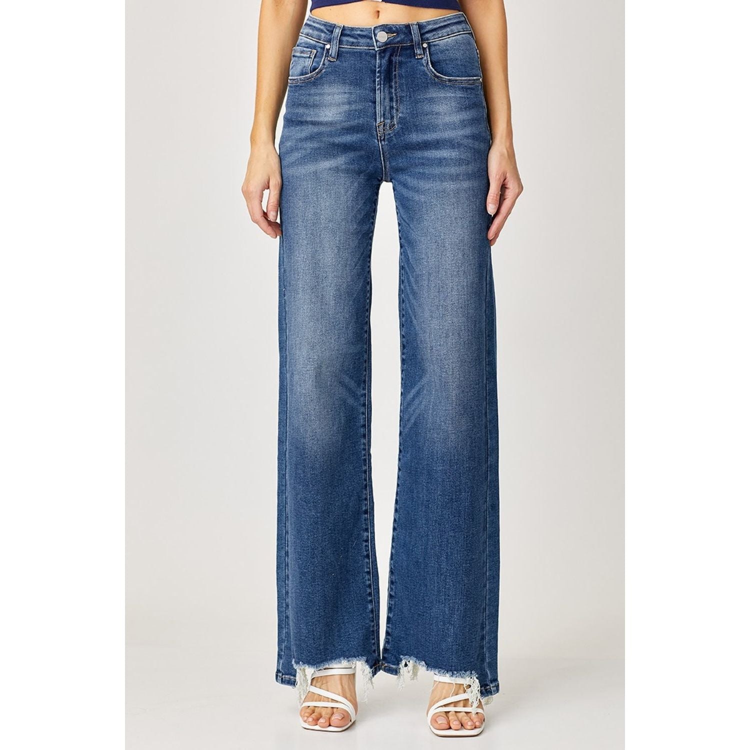 Risen Full Size High Rise Frayed Hem Wide Leg Jeans