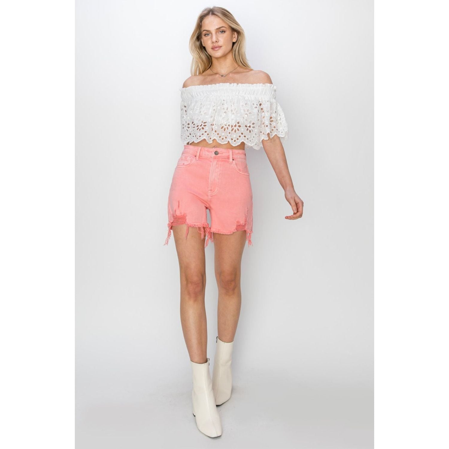 RISEN High Rise Distressed Denim Shorts
