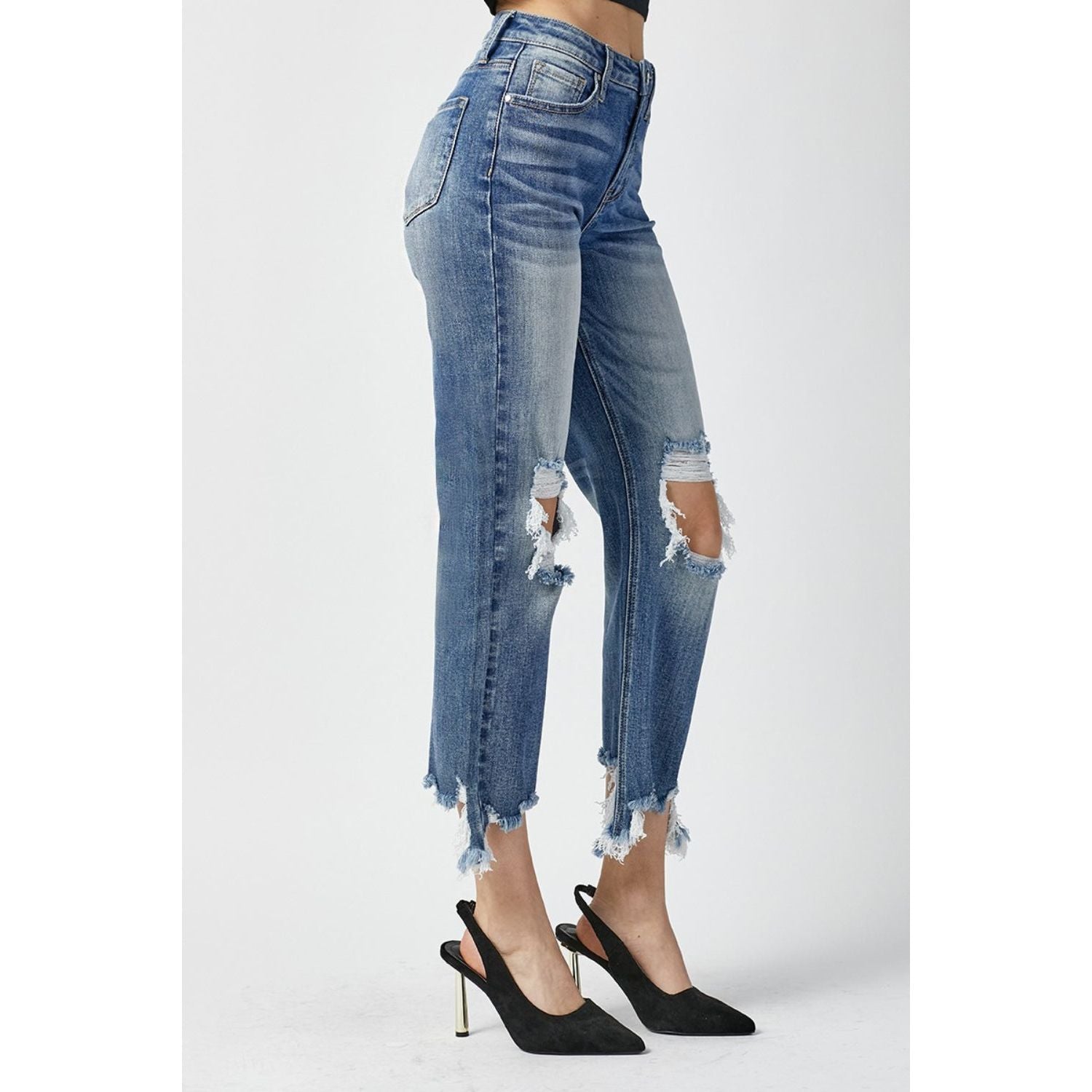 RISEN High Waist Distressed Frayed Hem Cropped Straight Jeans