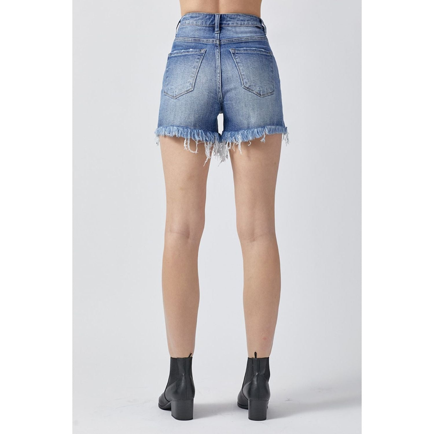 RISEN Raw Hem Asymmetrical Waist Denim Shorts