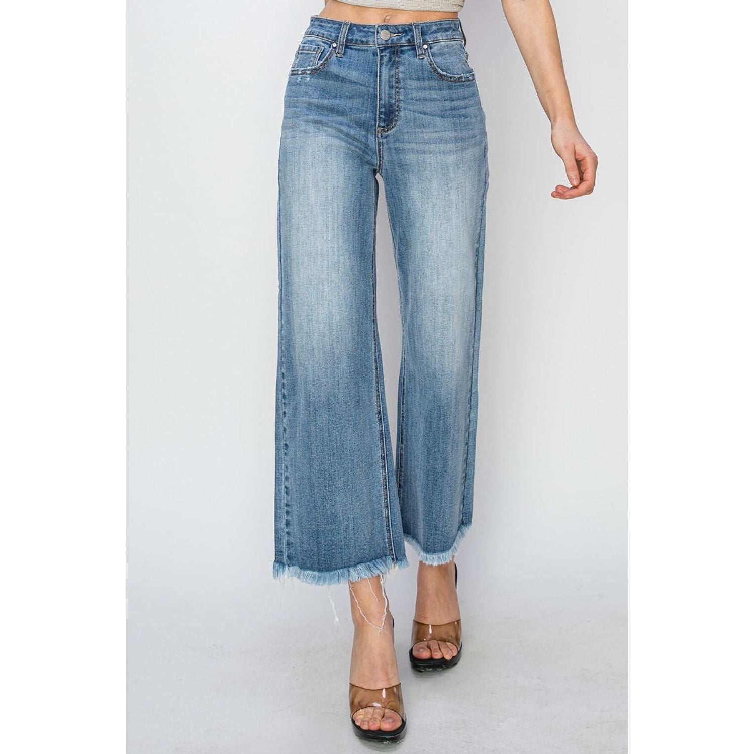 RISEN Raw Hem Cropped Wide Leg Jeans