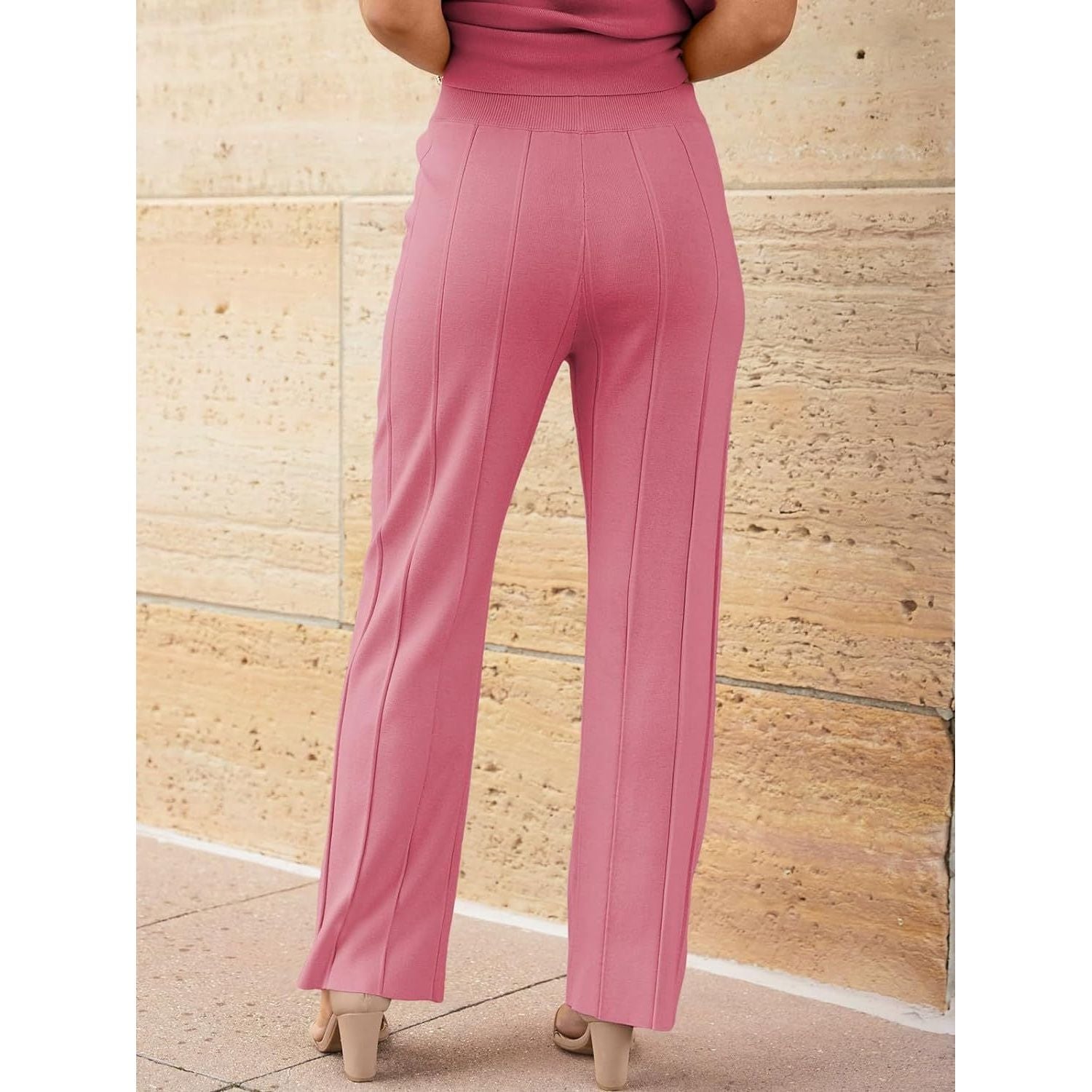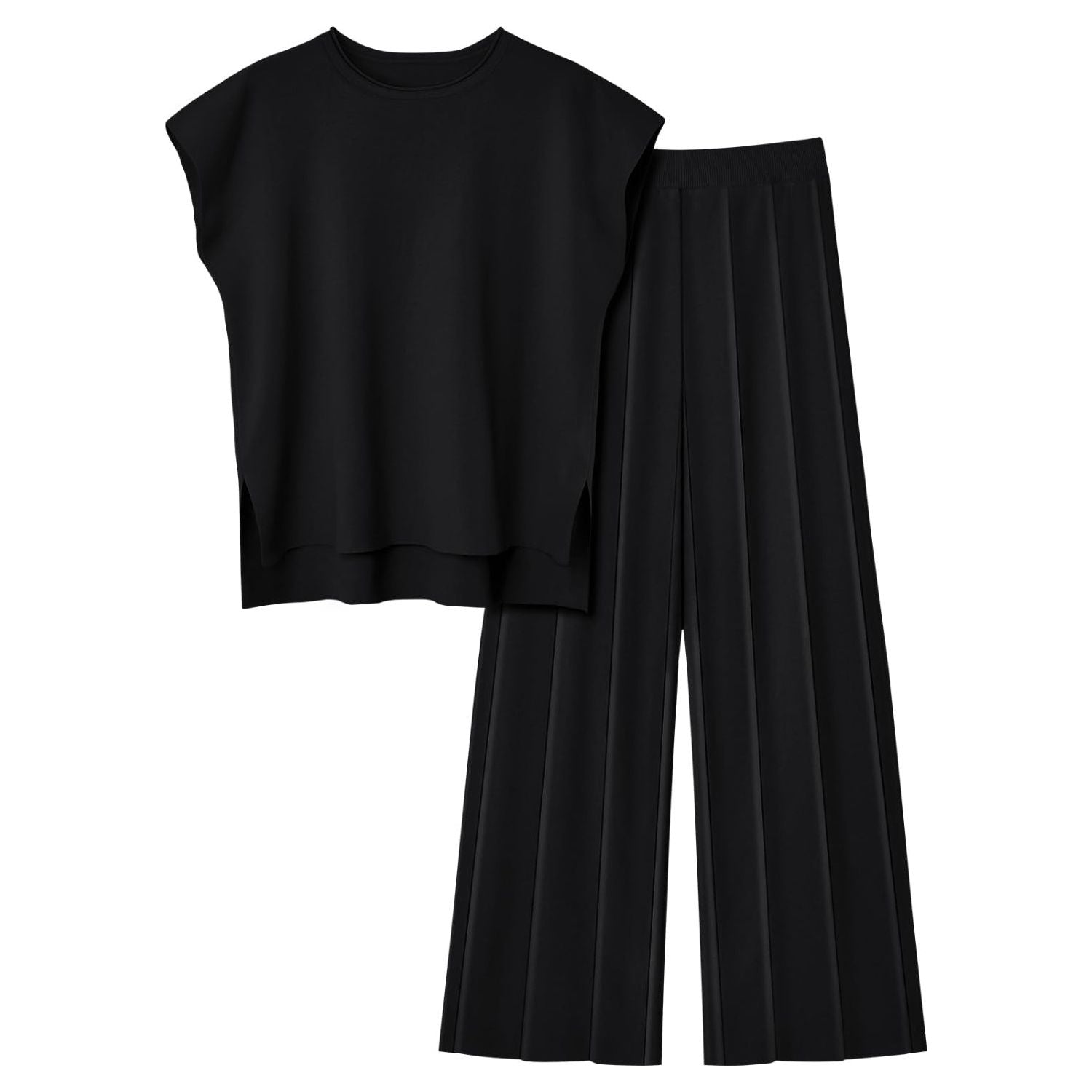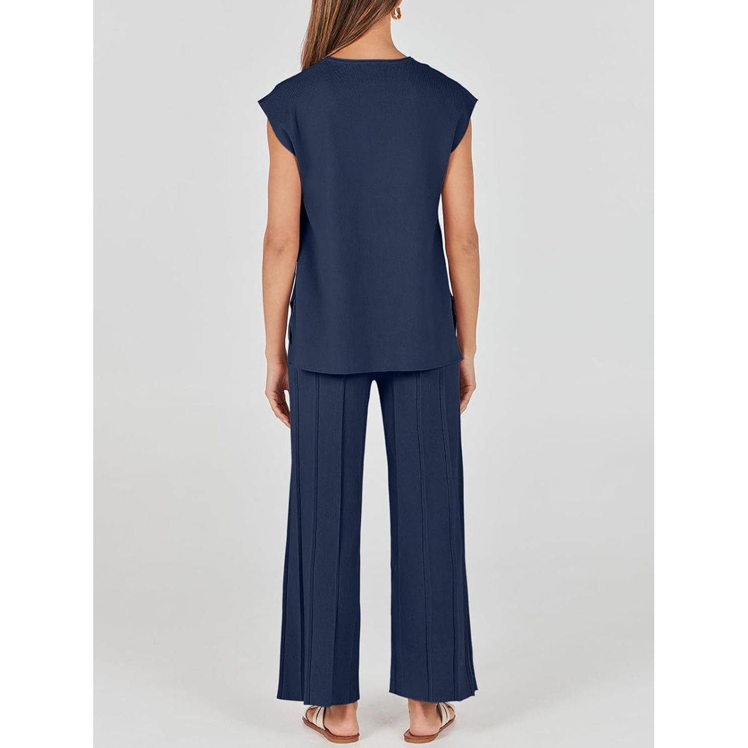 Round Neck Cap Sleeve Top and Pants Knit Set
