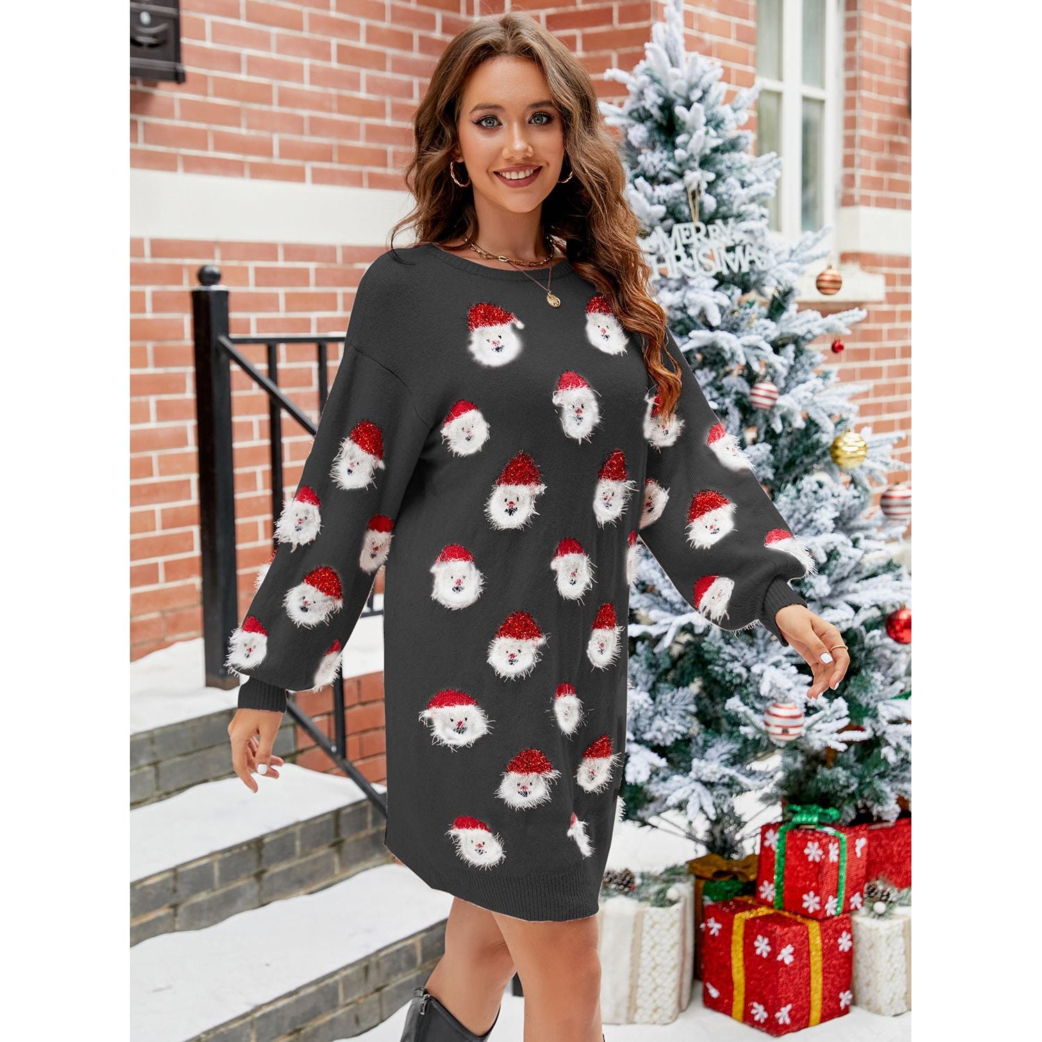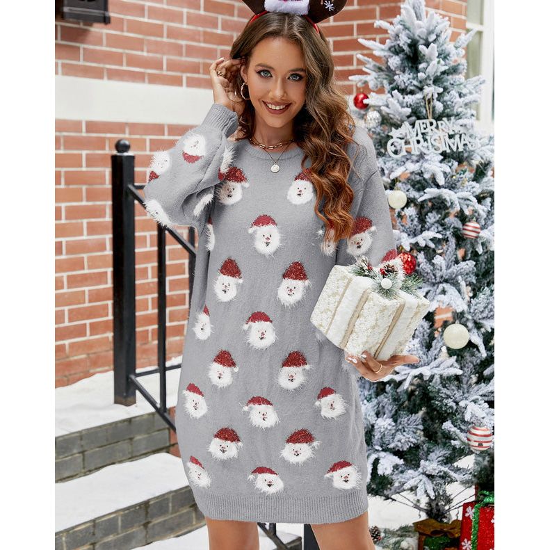Round Neck Dropped Shoulder Sweater Dress