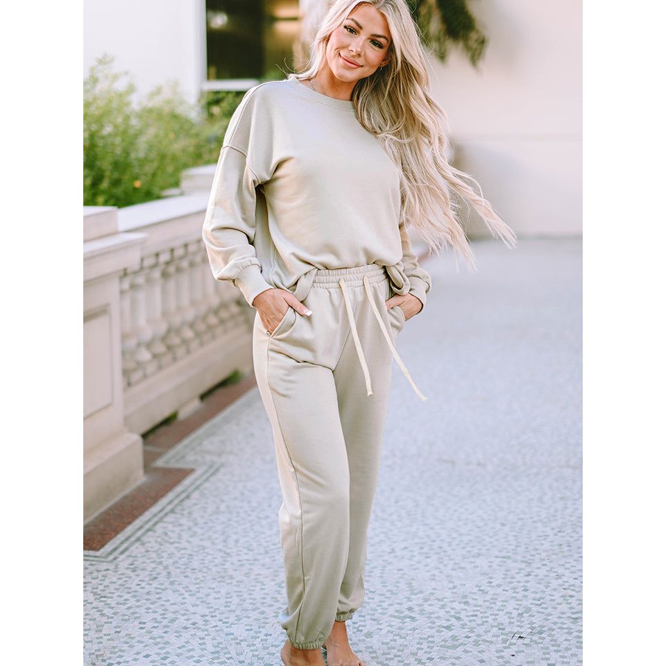 Round Neck Dropped Shoulder Top and Pants Lounge Set