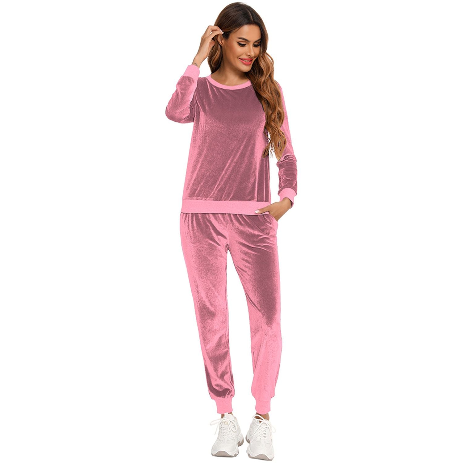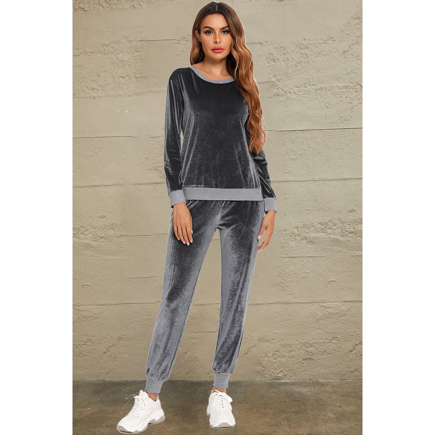 Round Neck Long Sleeve Loungewear Set with Pockets