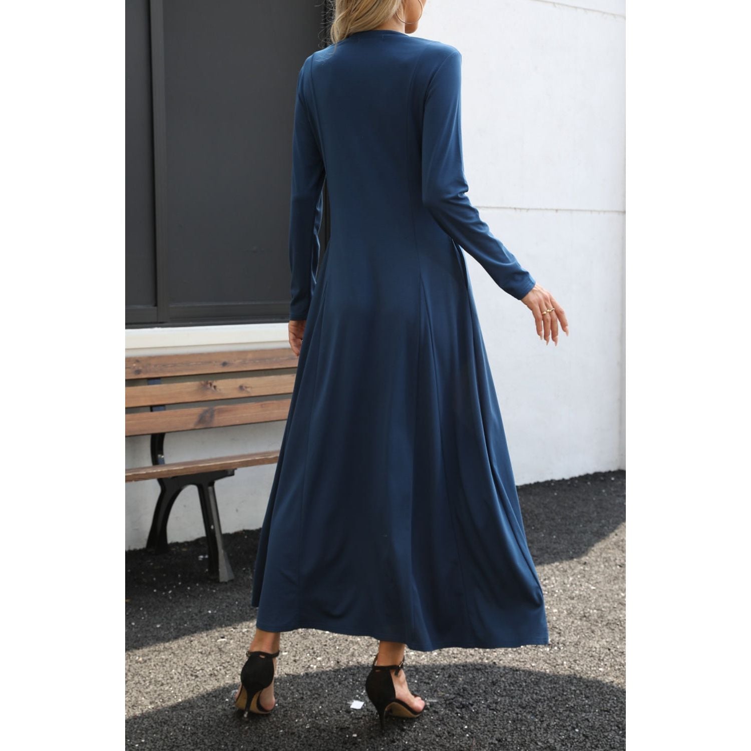 Round Neck Long Sleeve Maxi Dress with Pockets