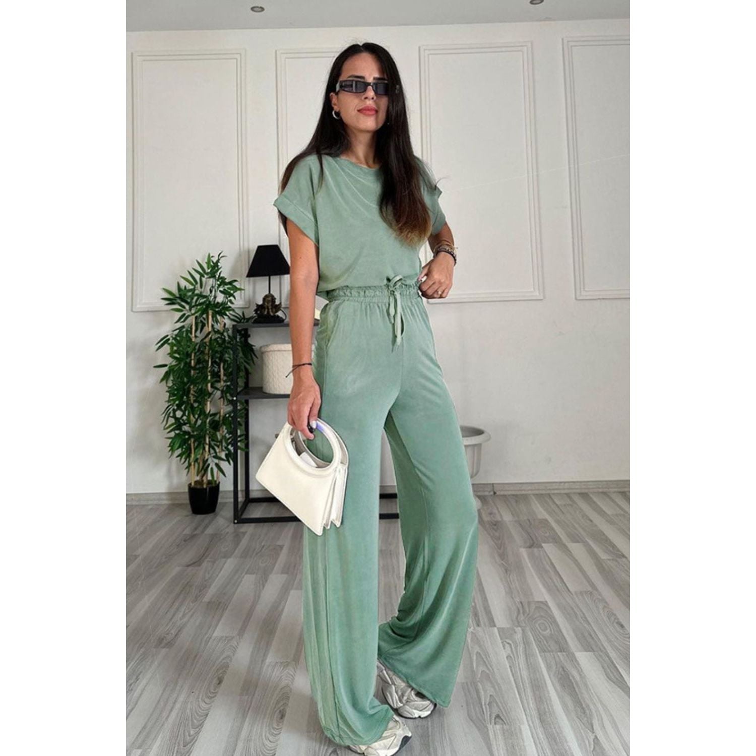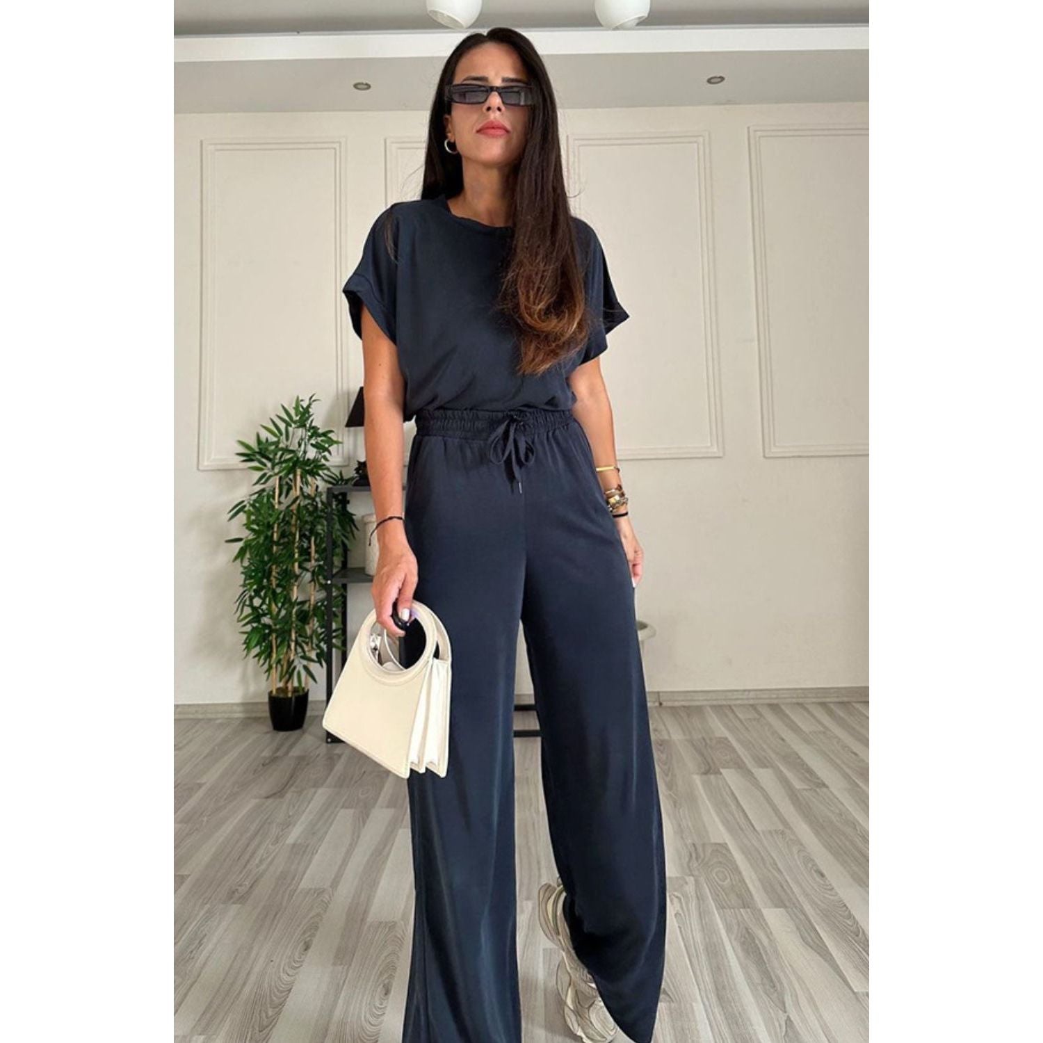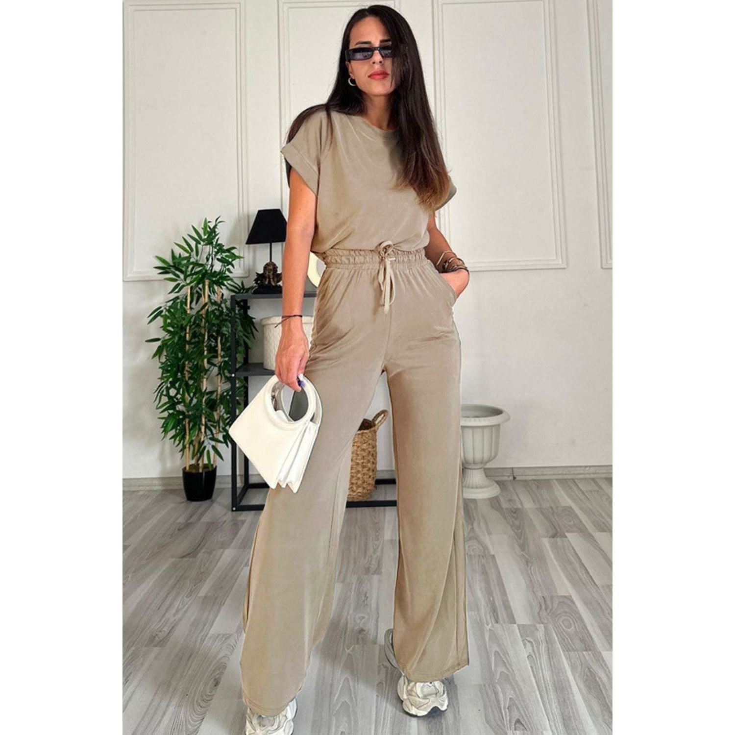 Round Neck Short Sleeve Top and Drawstring Pants Set