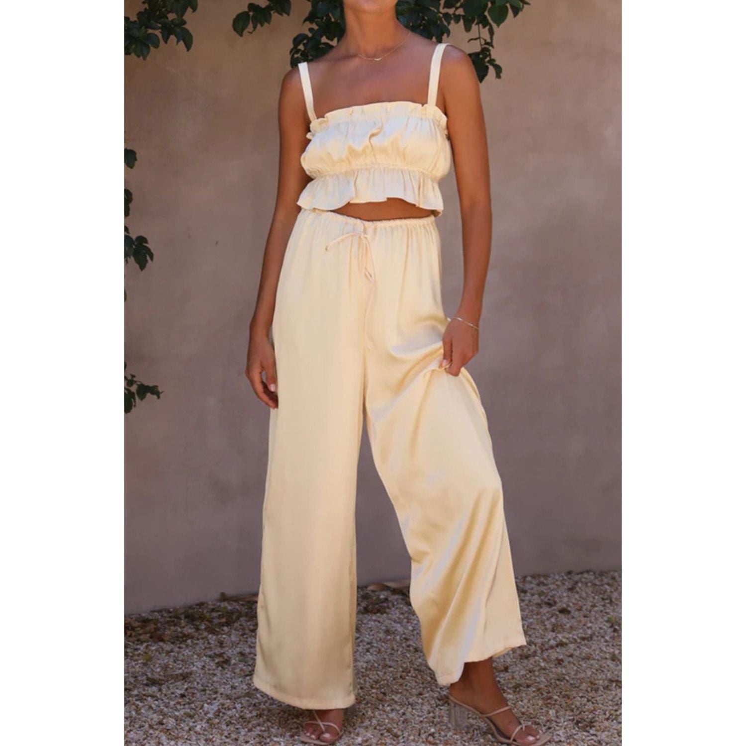 Ruffled Sleeveless Top and Wide Leg Pants Set