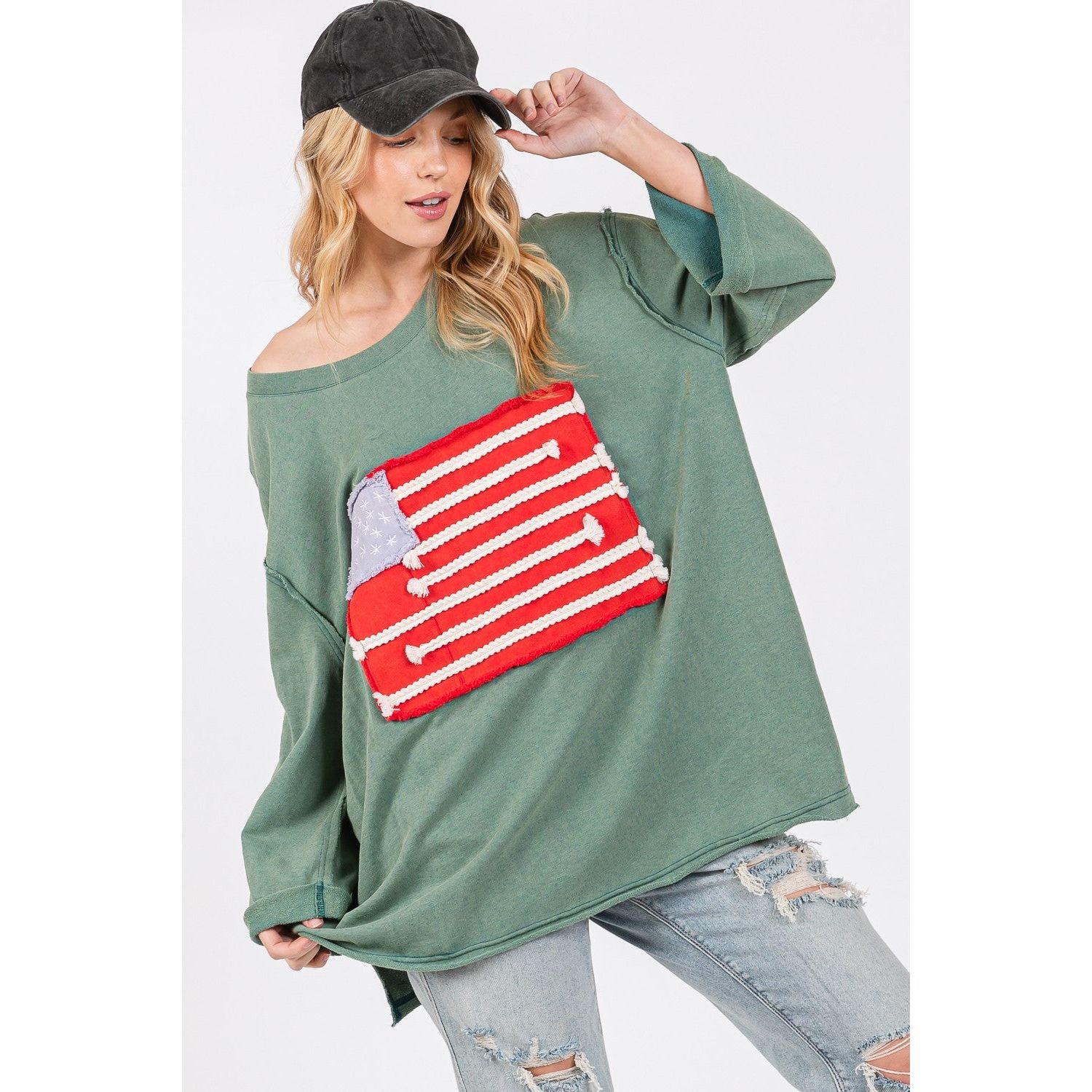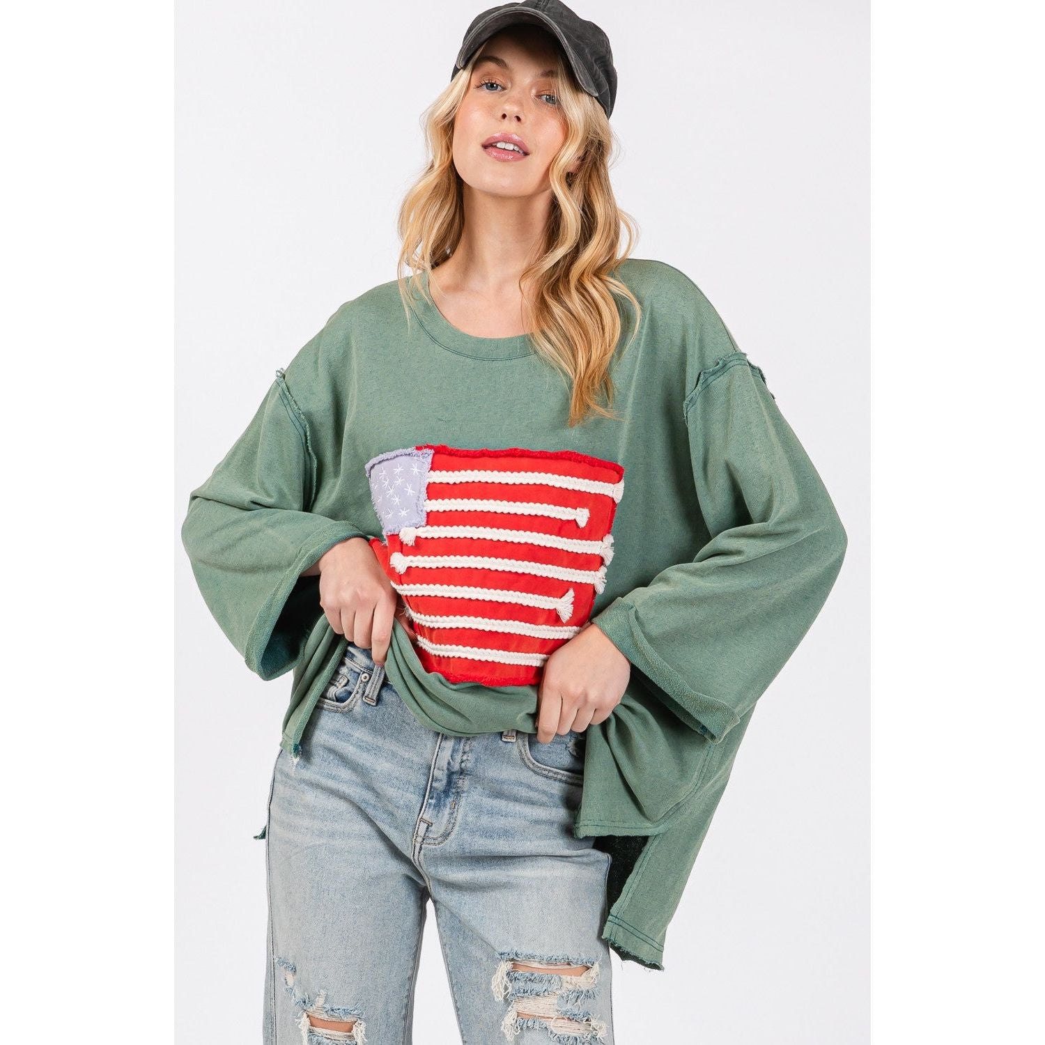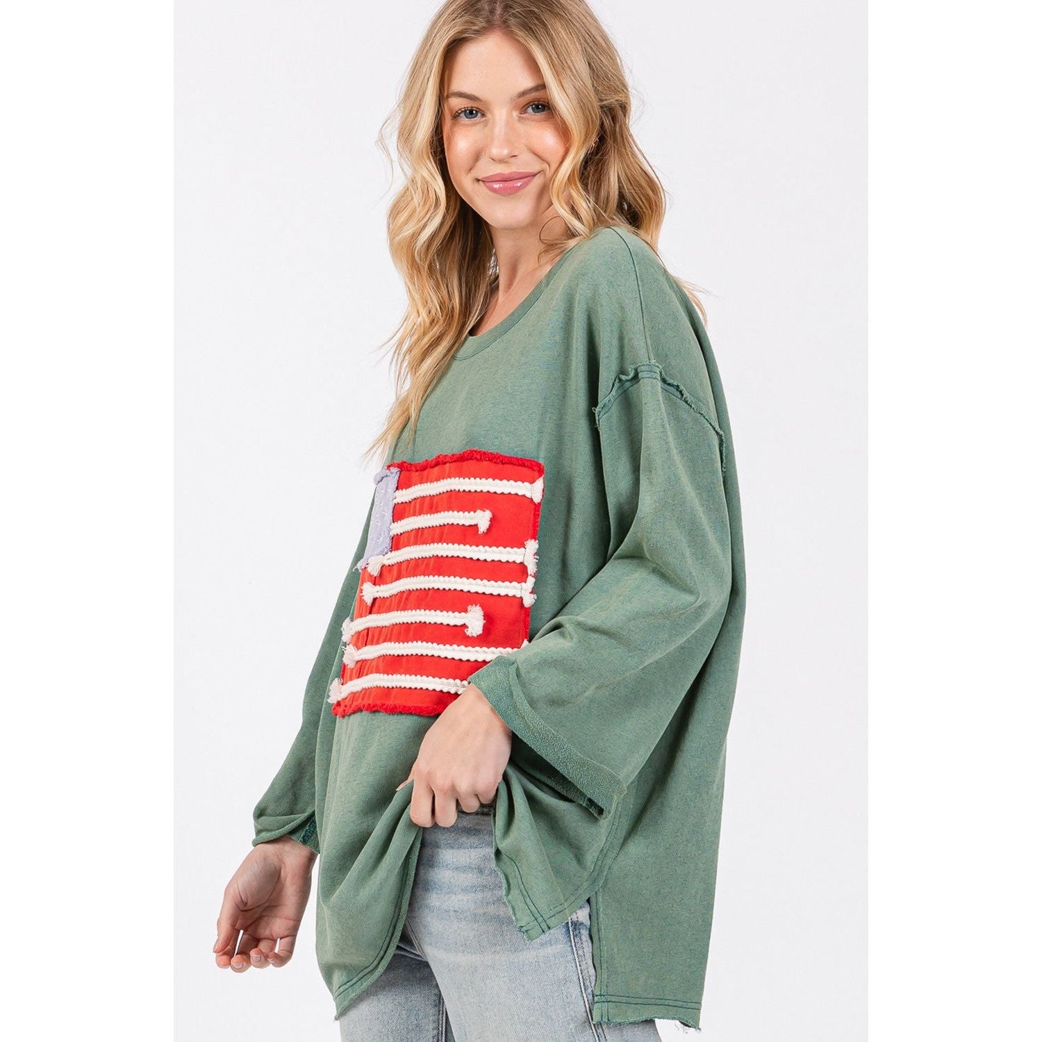SAGE + FIG Full Size American Flag Patch Drop Shoulder T-Shirt