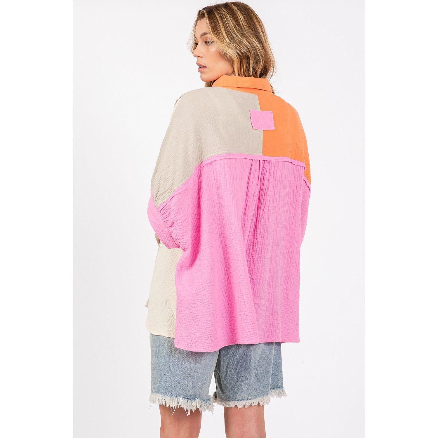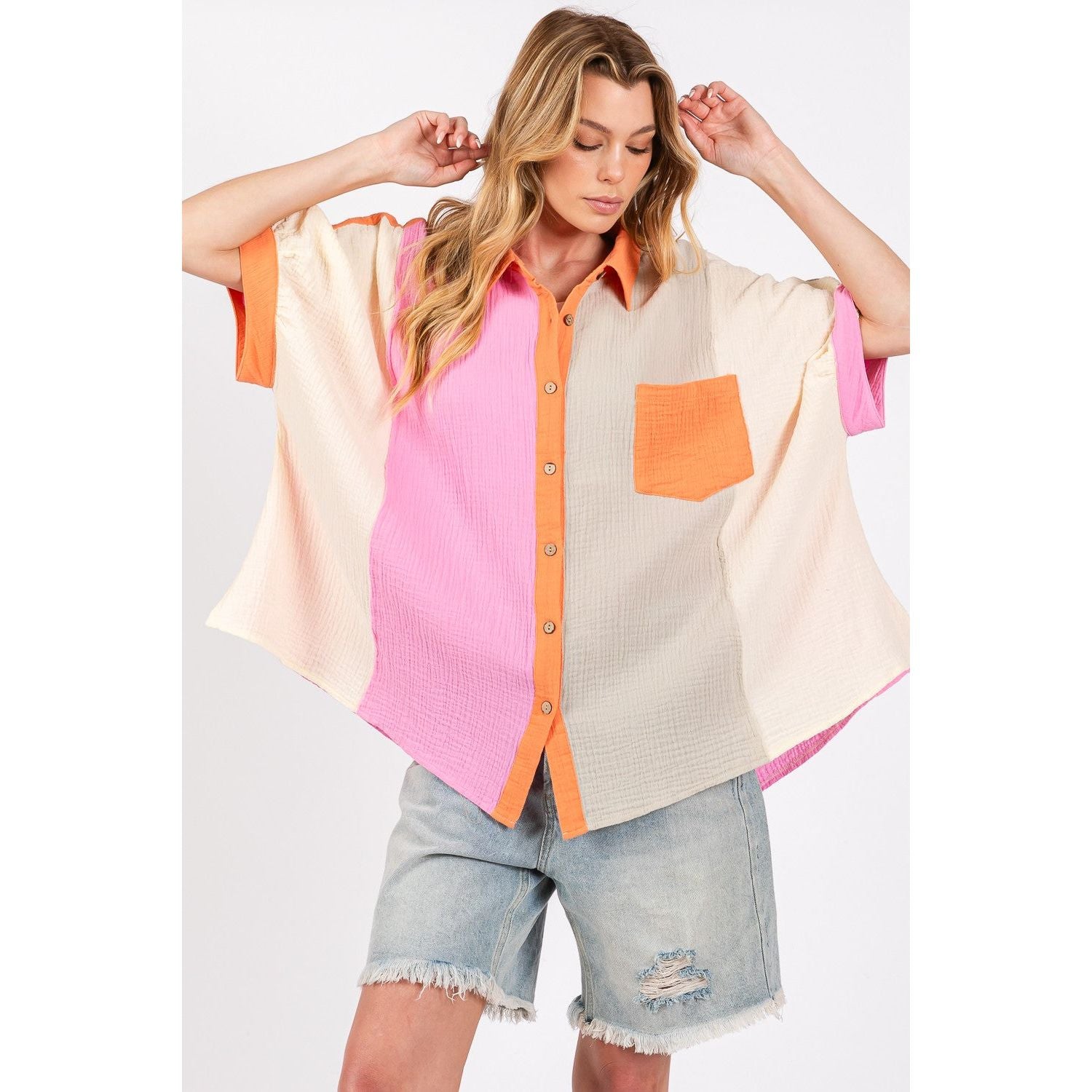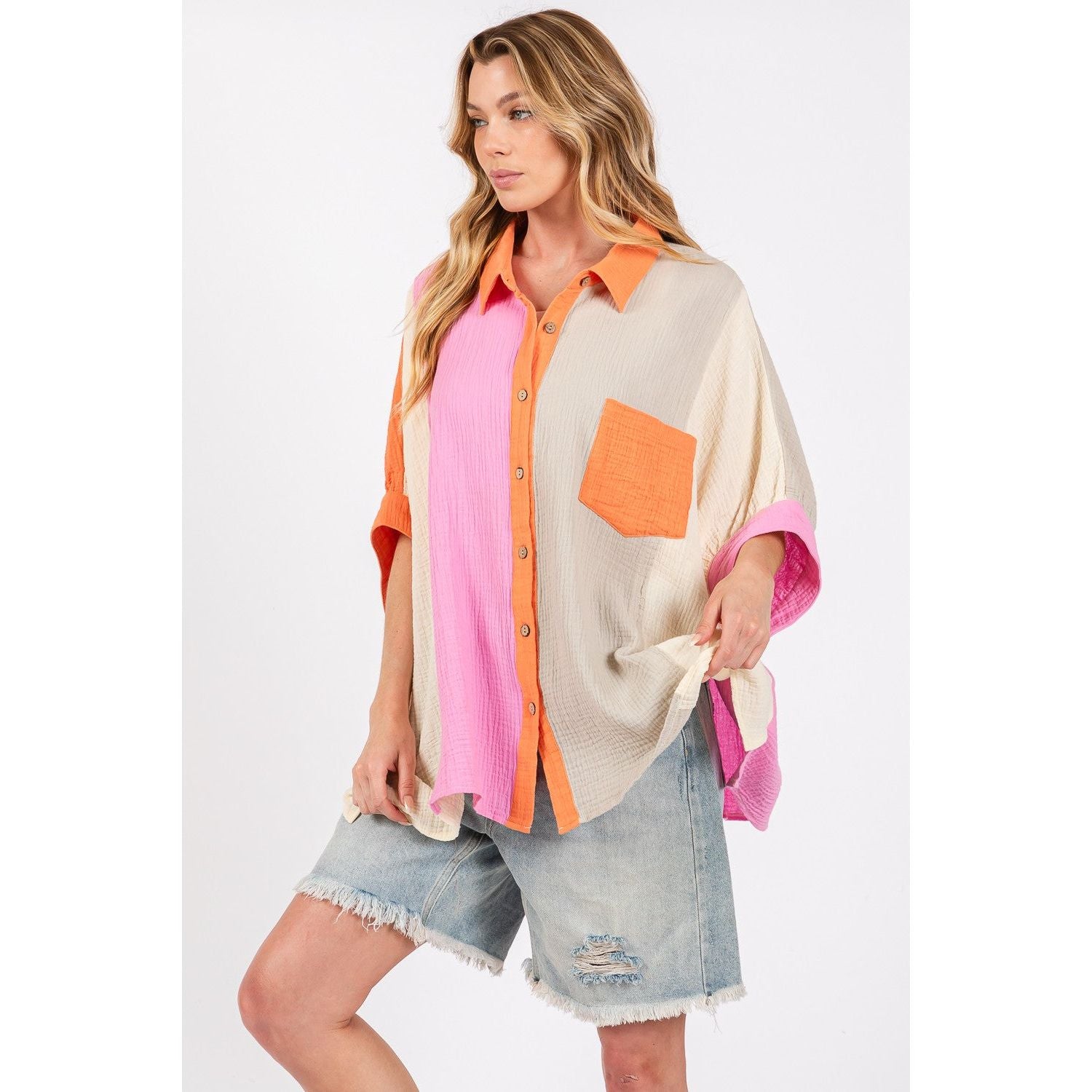 SAGE + FIG Full Size Color Block Button-Down Shirt